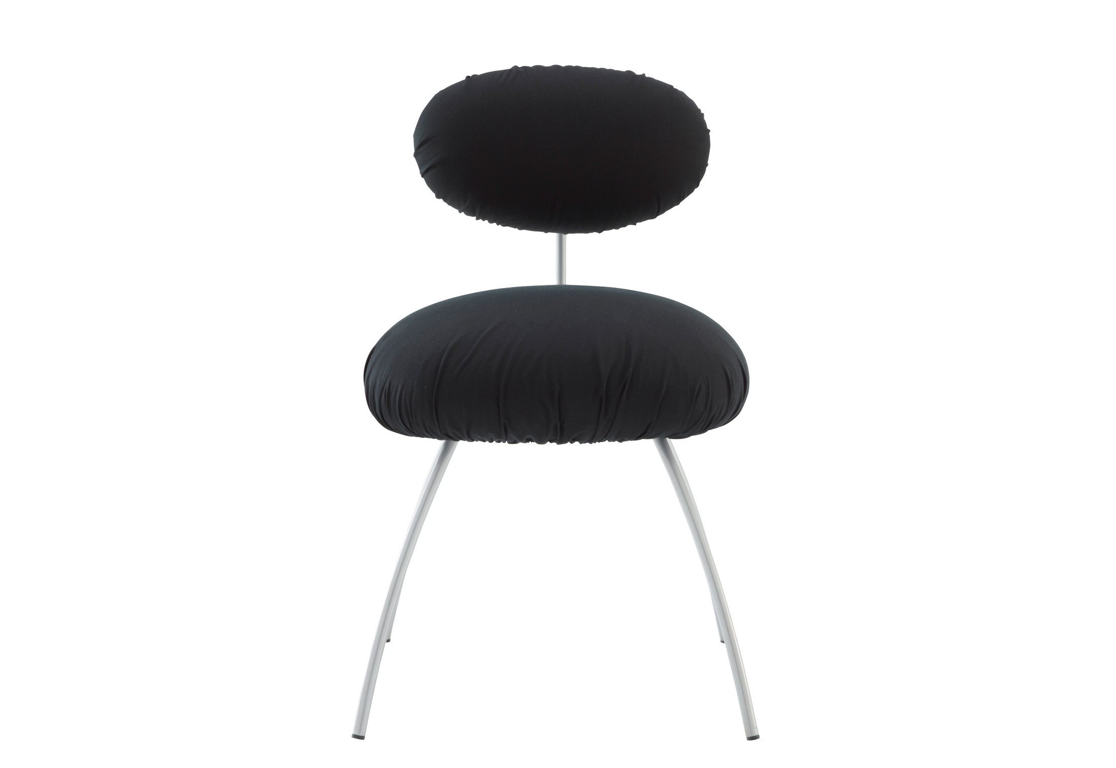 The chair of SAINT JAMES from the French manufacturer Ligne Roset. The chair combines slim, lightweight, elegantly-curved lines of metal parts with sensuously rounded shapes of the seat upholstery, armrests and backrest. Upholstery can be easily removed. The model is made in modern style. Colours in stock.