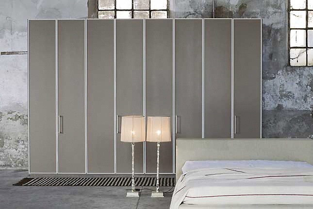 Centopercento wardrobe battente from the Italian manufacturer features tisettanta furnishings. The frame is made of wood. The facade is made of veneer wood and glass. The color of this model of wardrobe you can choose from the catalogue of the manufacturer.