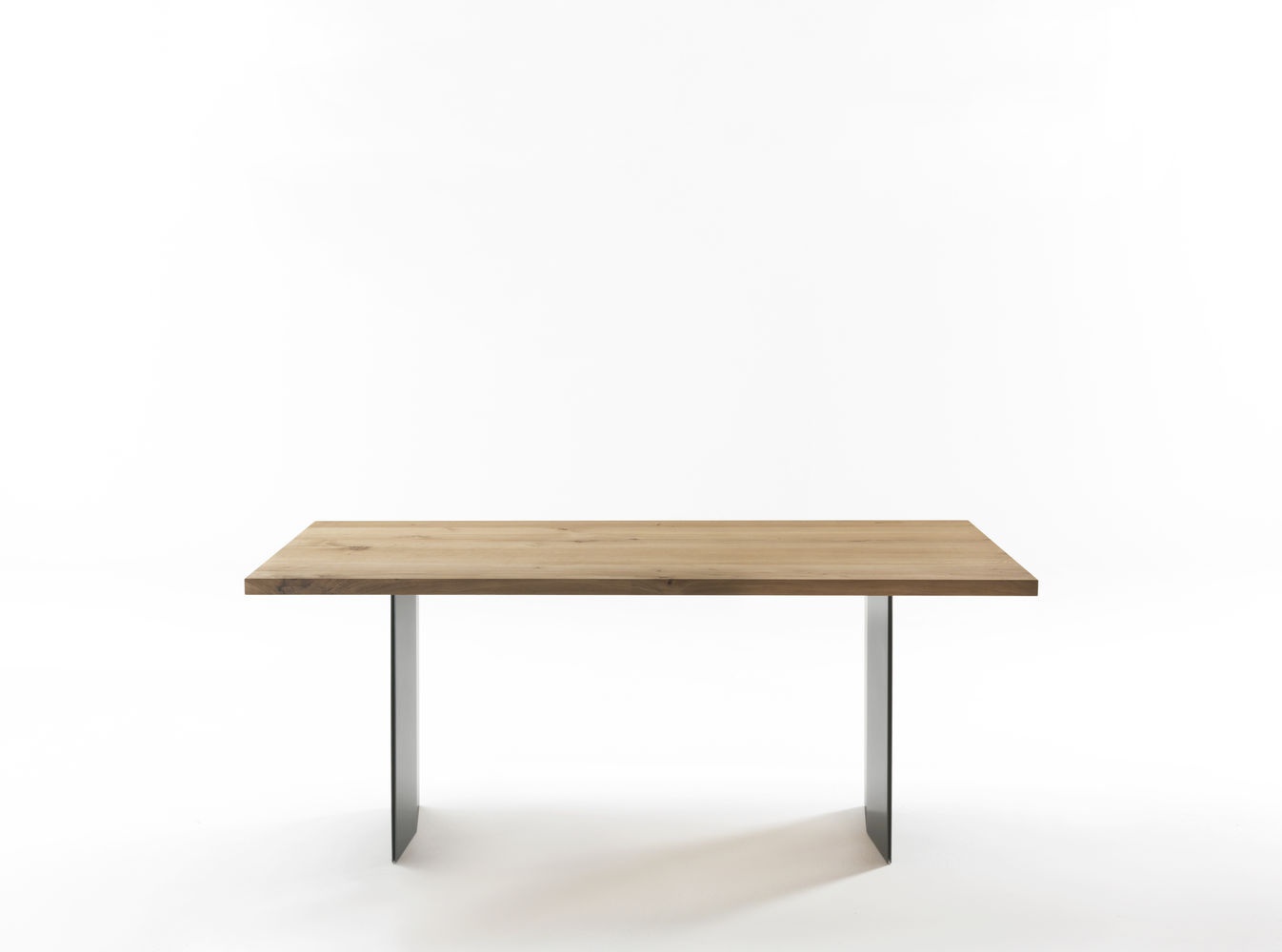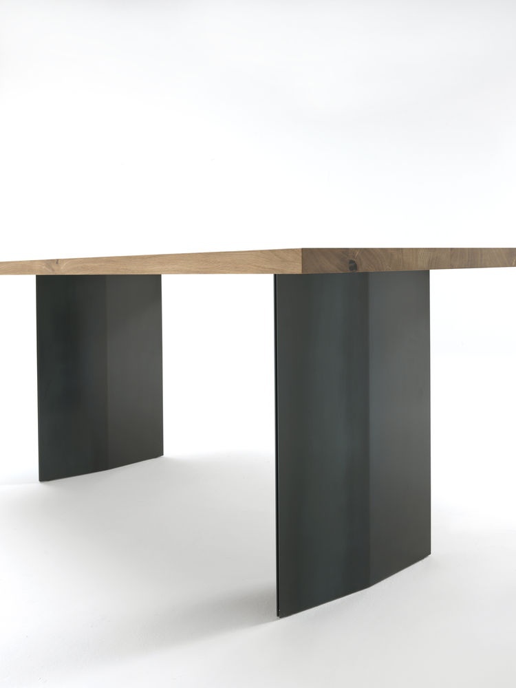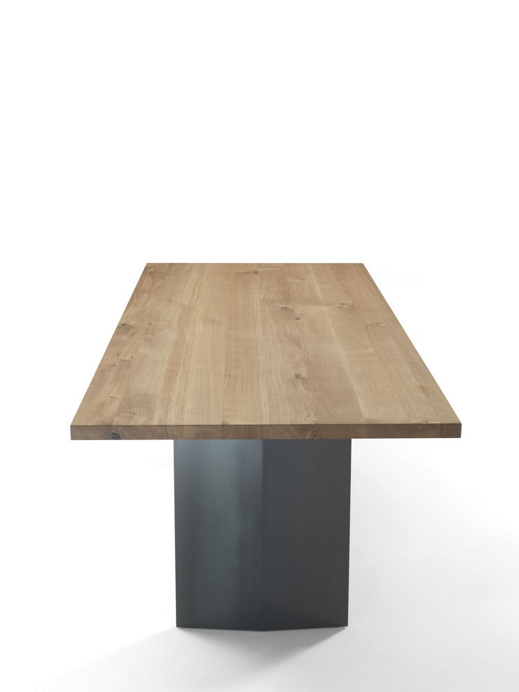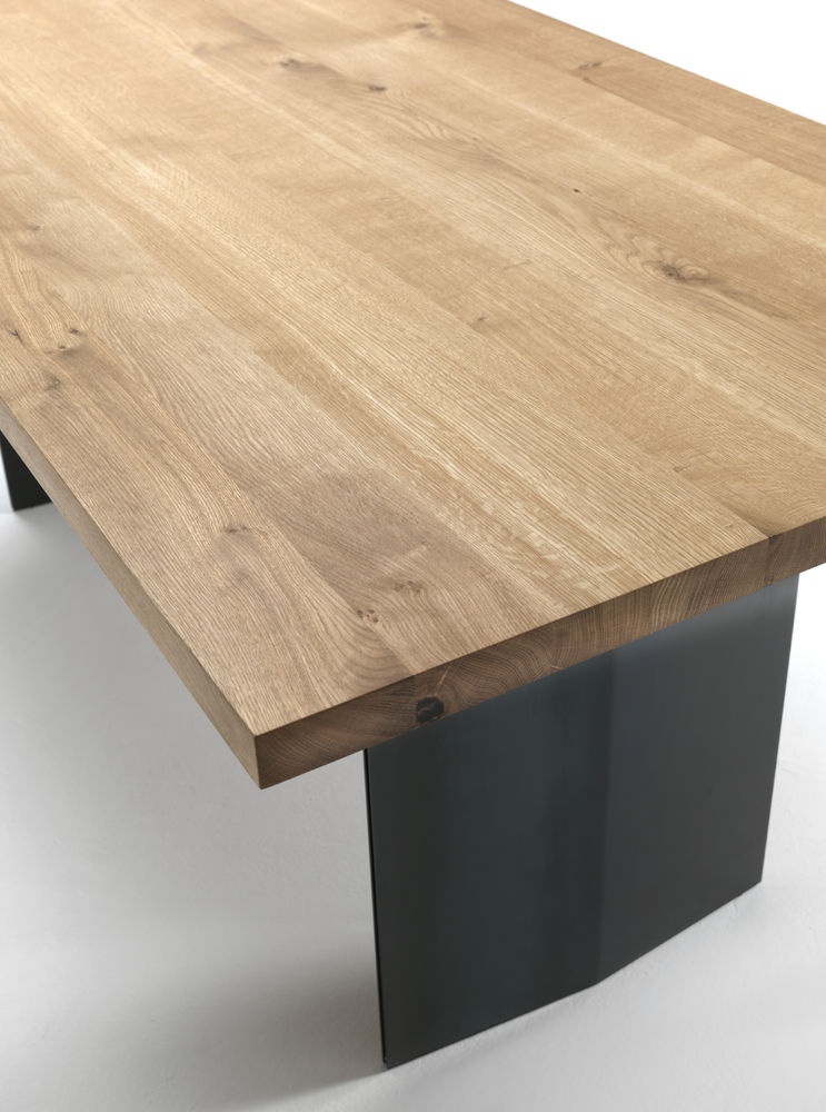 Table Sky-Natura Squared from the Italian manufacturer Riva 1920. The model with rectangular top made of oak or walnut. Legs are made from iron and lacquered.