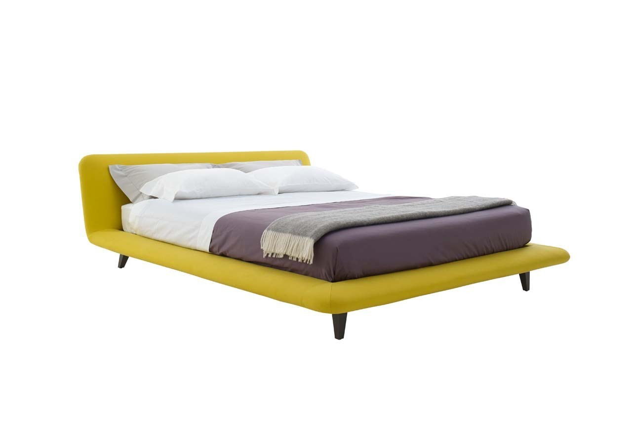 Double bed UZUME from French manufacturer Ligne Roset. This low bed is available in two heights. The model has a rounded shape. The back and the frame is completely upholstered and covered with a cover, which if necessary can be removed. A wide range of upholsteries. The style is modern. Colours in stock.