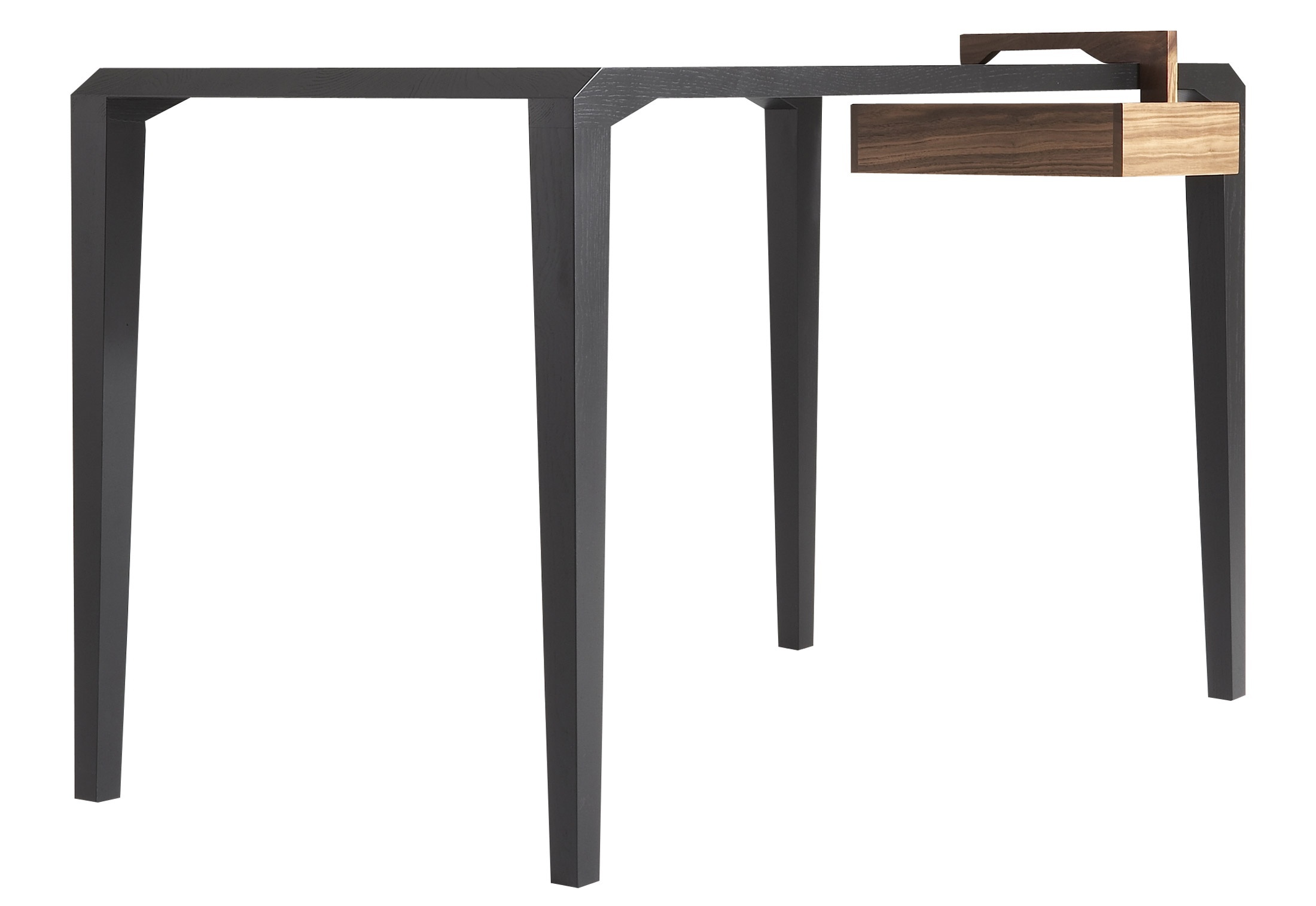 Writing Desk VILLA ROSE from the French manufacturer Ligne Roset. The table is made from solid bog oak. An object as simple as possible – to the actual table and a single drawer for storage of solid walnut, which according to the original concept without any mechanics slides easily under the table surface. The model is made in modern style.