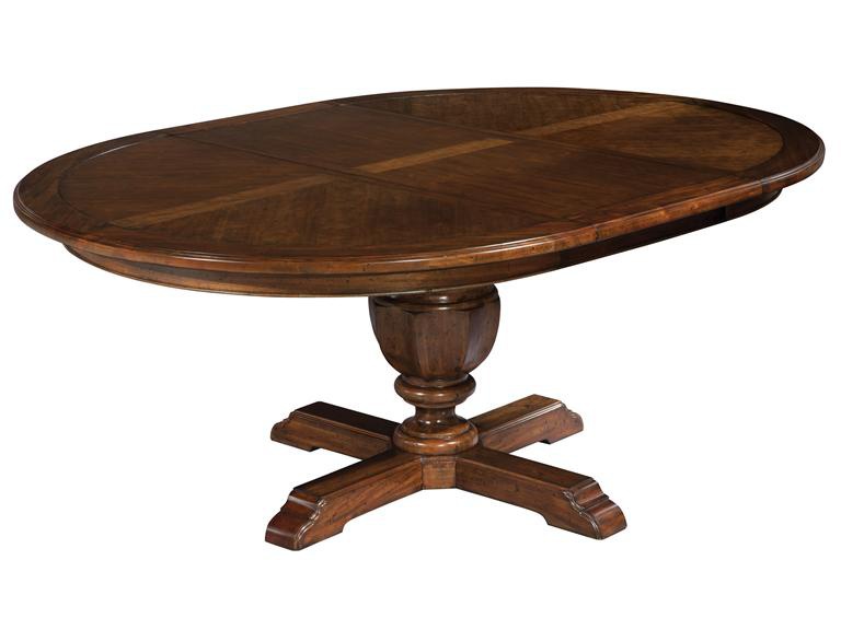 Vintage European Desk from an American manufacturer Hekman Furniture. Round extending dining table, decorated in vintage style, decorate dining room, furnished in a traditional style, and give solemnity to family dinners. The table is made from hardwood and covered with cherry veneer. The tabletop is decorated with geometric pattern, which breaks when the extension table. Massive carved base, barrel leg, a table edge trimmed rim. The extended 510 mm the table top is oval in shape. The natural color of wood, the product is polished, the texture is well developed. Careful selection of highly qualified professionals and follow the traditions of world cultures - that's the key to success and longevity of the company Hekman Furniture world market furniture manufacturers.