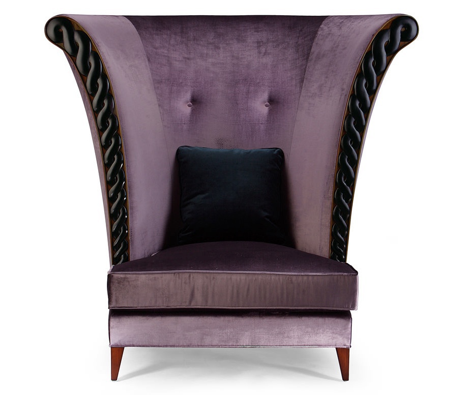 Chair Verbier from producer Christopher Guy (Harrison & Gil). The model with high backrest made of natural wood. Decorative elements thread of manual work. Upholstery - textiles. Filler foam. The style is art Deco. Colours in stock.