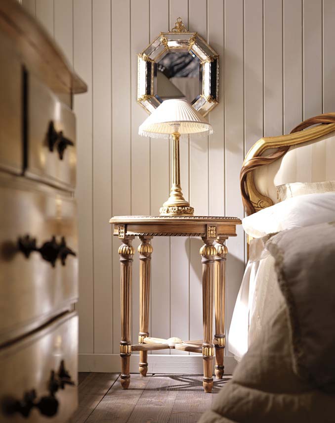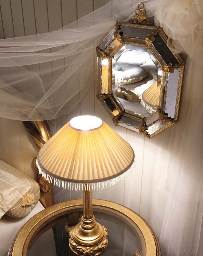 Set for bedroom Ambiente Notte from the Italian manufacturer Savio Firmino. Consists of double bed, pridivannogo and coffee tables, chest, benches, mirrors. Frames products made from solid wood. Set decorative hand carved. The lacquer coating from the company portfolio, gilt. Upholstery textile. Material countertops - glass. Variant colors and textures to choose from a range of companies. Set made in a classic style. A perfect choice for classic bedrooms.