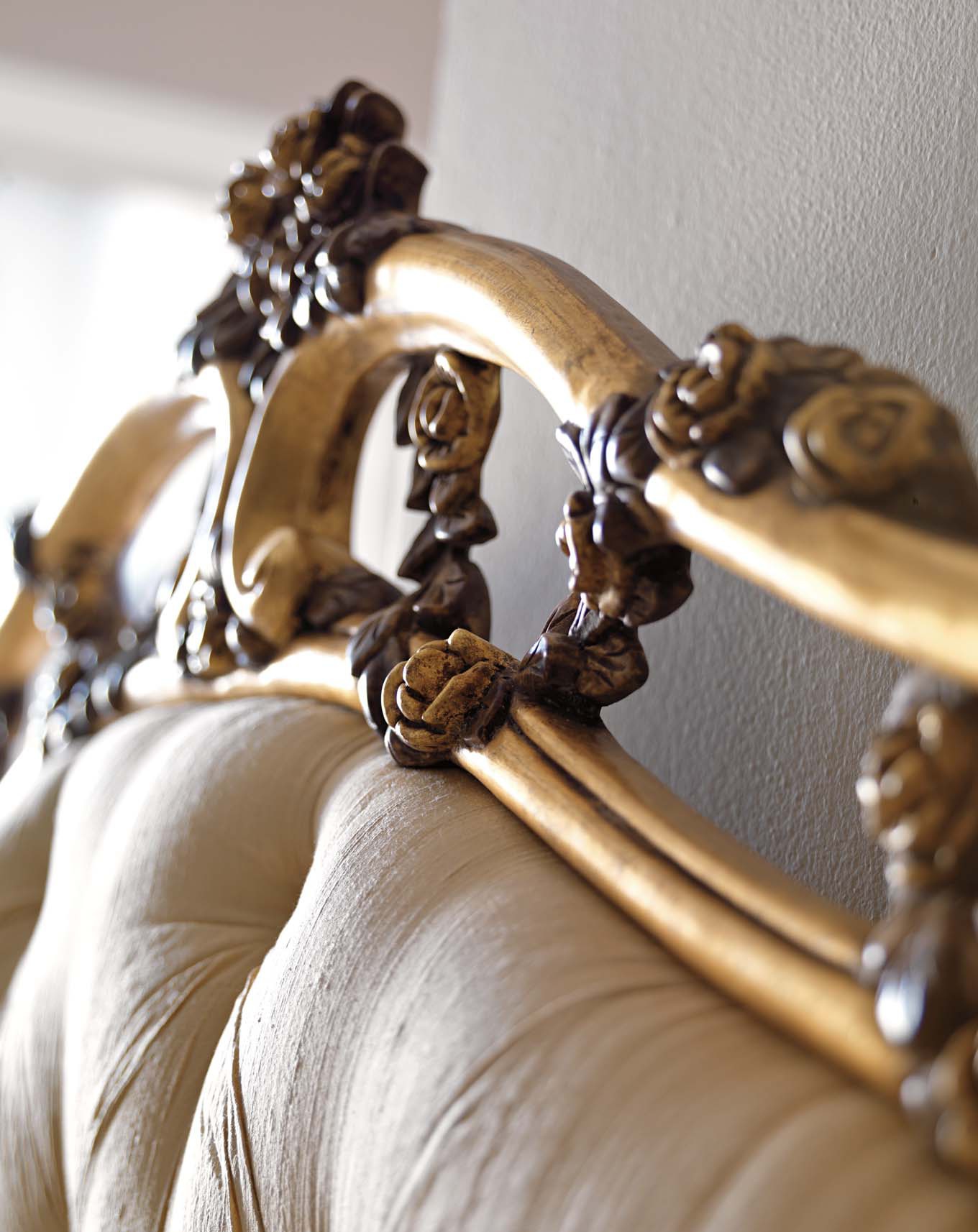 frame: solid wood upholstery: textiles coating: lacquered decor: carved decor: handmade decor: gilding |
