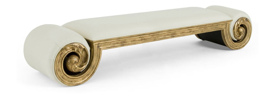 Bench Juliana from producer Christopher Guy (Harrison & Gil). Bench with upholstered, leather or textiles from a range of companies. The frame is natural wood. Decorative elements thread of manual work. The finishing - varnish. The model is made in art Deco style, combines tradition and design. Colours in stock.