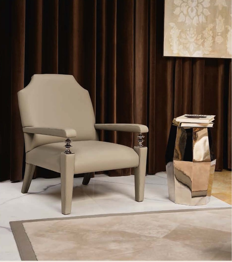 KING armchair from Italian manufacturer Smania. The model is made in art Deco style. The frame is made of wood. For upholstery, leather or textiles. Colours in stock.