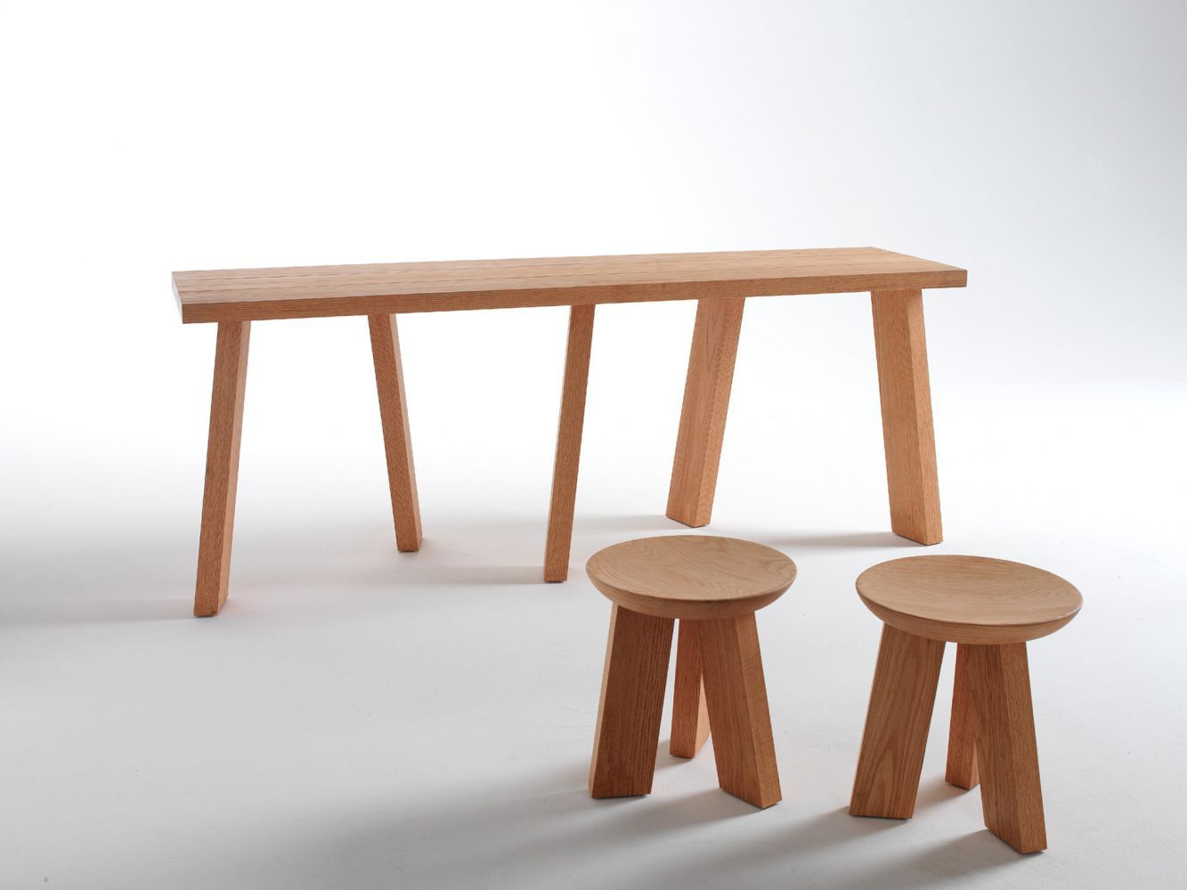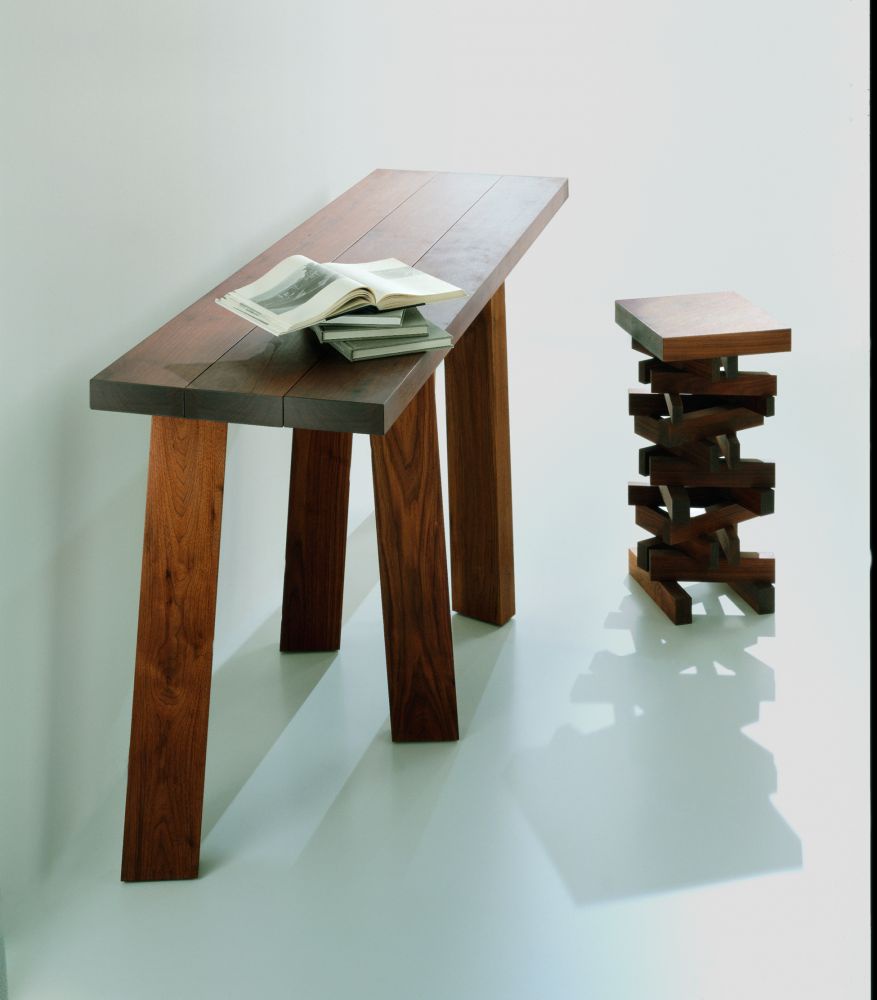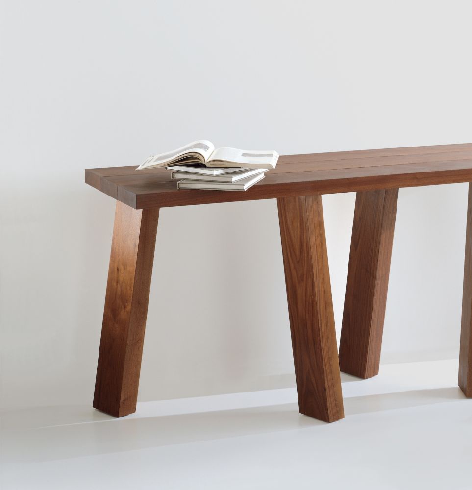 Console Ludo from the Italian manufacturer Riva 1920. The model a fresh and modern design fully made from solid wood of different breeds in stock. Countertop thickness 4.8 cm is based on five legs.
