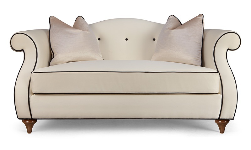 Double sofa Cézanne from producer Christopher Guy (Harrison & Gil). Legs - natural wood. The surface is covered with varnish. Upholstery - textiles. Filler foam. The model is made in art Deco style, combines tradition and design. Colours in stock.