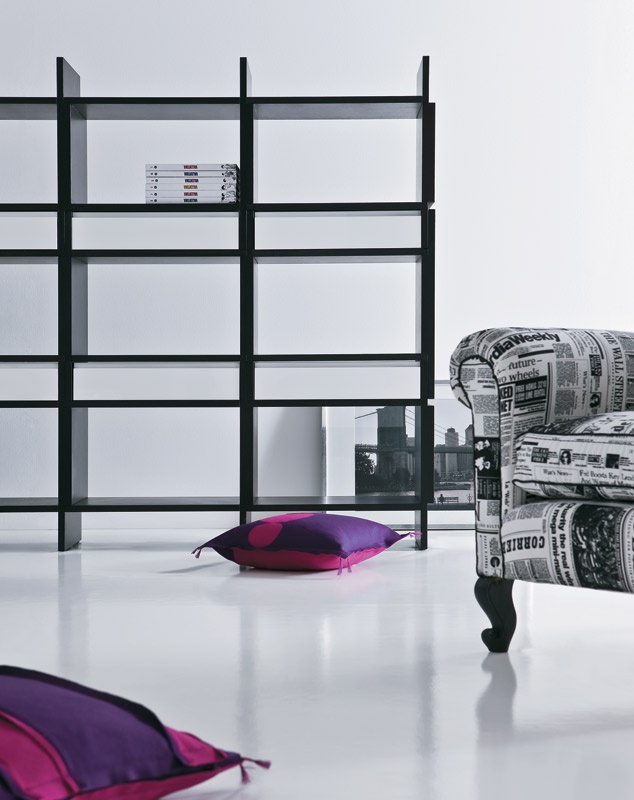 Bilateral bookcase Unless from the Italian manufacturer Pianca. Made of wood: veneer. Elements of a case are transformed at the request of the owner. All units comprising side panels and shelves, stacked and joined together with the help of the connections made on each side. Boxes can also be bilateral, available in glossy white or dark oak. The style is modern and contemporary.