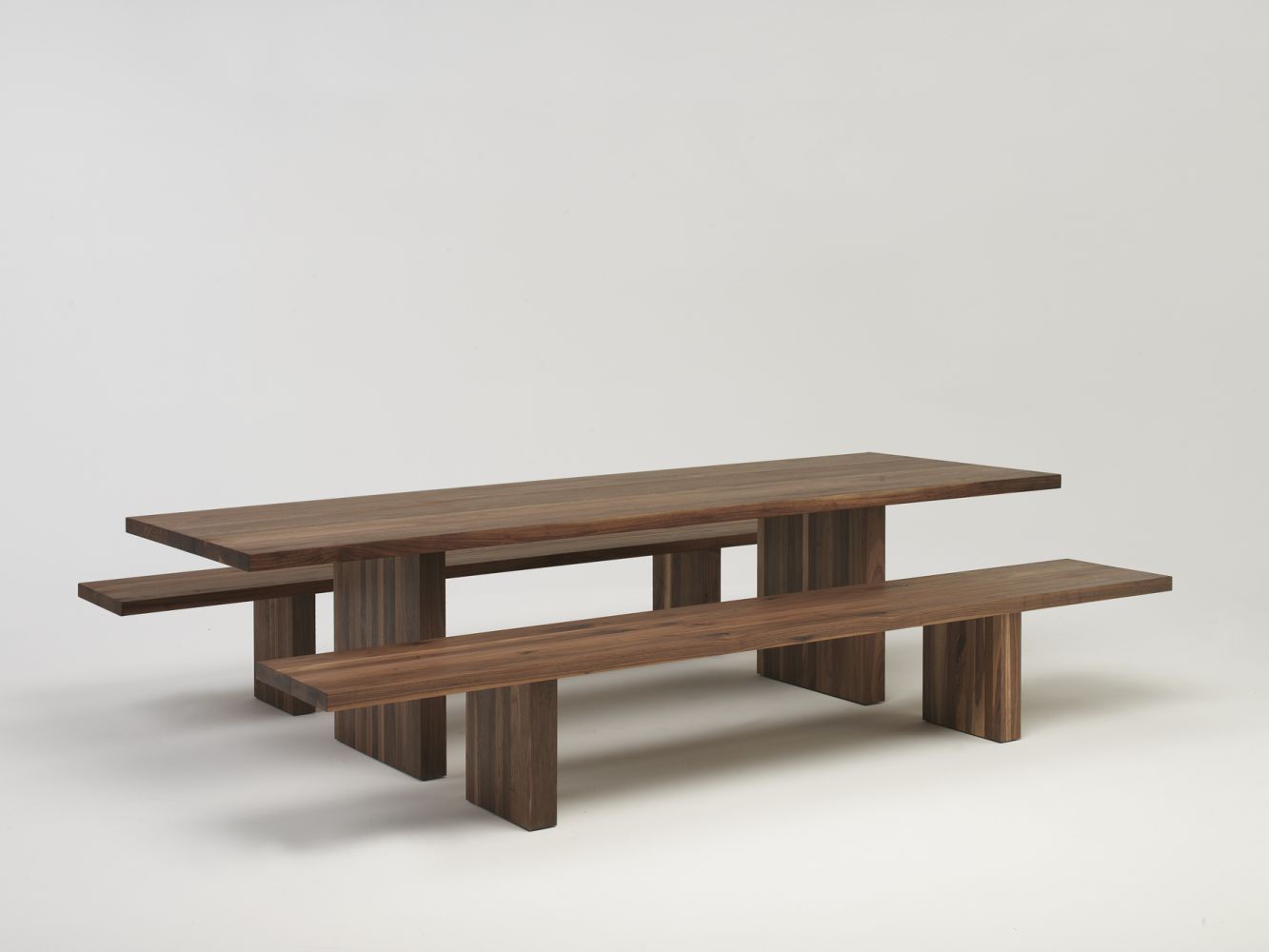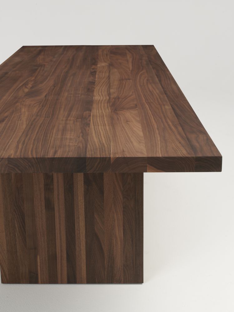 The table Day By Day 2008 from the Italian manufacturer Riva 1920. Dining model with rectangular top thickness 4.8 cm solid wood. Supports are made from solid wood with a thickness of 8 cm For the manufacture of the table is used natural wood with knots without artificial colors and additives.