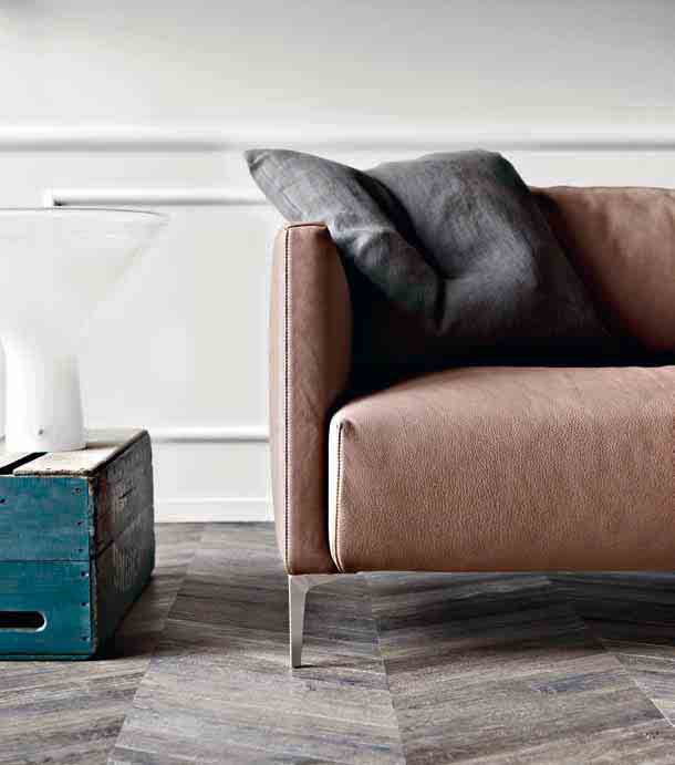 The sofa in Volo leather upholstery, Pianca