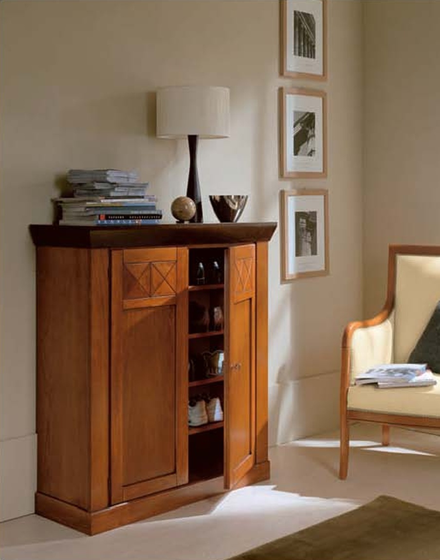 Patent Cabinet for shoes from the Italian manufacturer Selva. This indicator is based on a frame made of Linden wood. Finish veneer wood. Colors according catalogue. The model is executed in classical style.