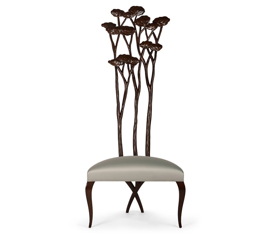 Chair Le Jardin from producer Christopher Guy (Harrison & Gil). The frame is natural wood. Features attaches to the back is decorated with handmade carving. The surface is covered with varnish. Upholstery - textiles / leather. The model is made in art Deco style, combines tradition and design. Colours in stock.