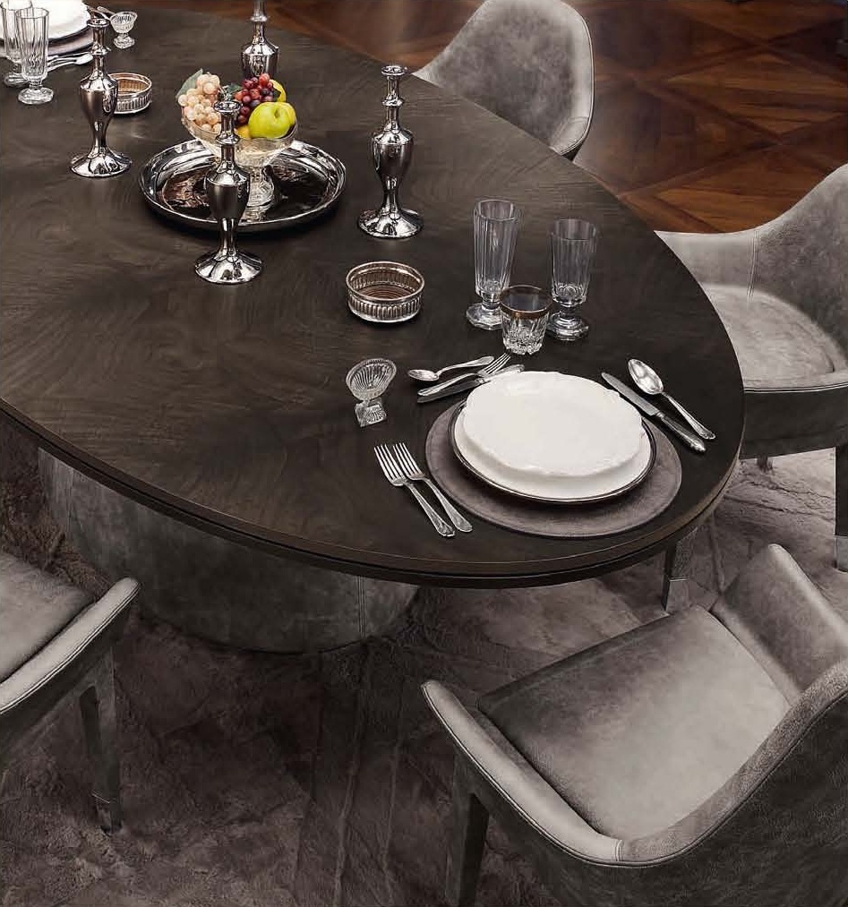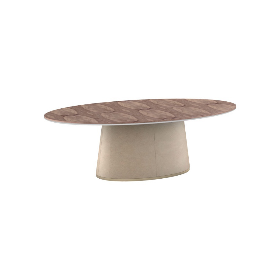 Dining oval table in modern style Daytona from the Italian manufacturer Smania. One model has an oval base covered with skin. The frame is made of wood. Finish options: wenge, walnut and rosewood. Accessories from the Nickel and stainless steel. Colours in stock. Elegant Daytona table will decorate Your dining room and make an unforgettable romantic evening or a nice family meal.