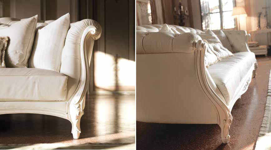 frame, legs: solid wood upholstery: textiles filler: polyurethane foam (SPF) upholstery: genuine leather decor: carved decor: handmade decor: gilding coating: lacquered |