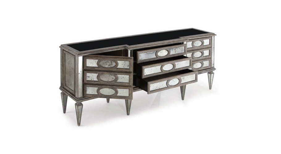 Montmartre dresser from producer Christopher Guy (Harrison & Gil). The case is natural wood. Decorative elements thread of manual work. Finish - aged. Model with hinged and sliding doors in art Deco style. Colours in stock.