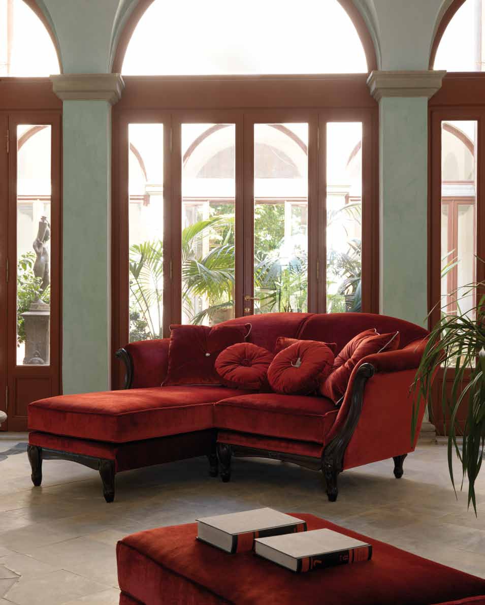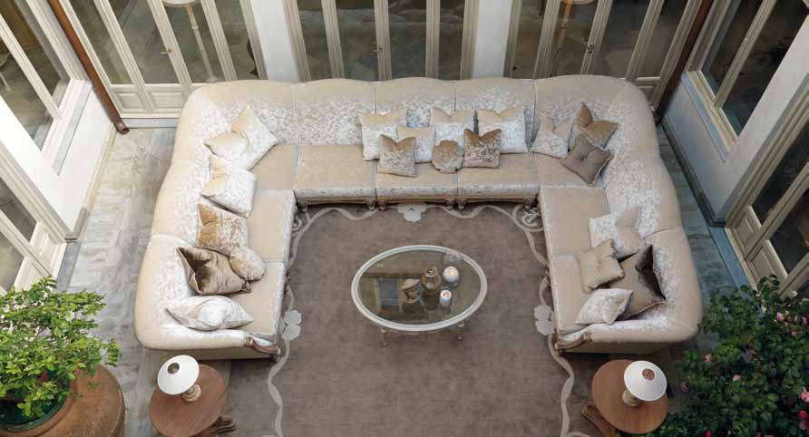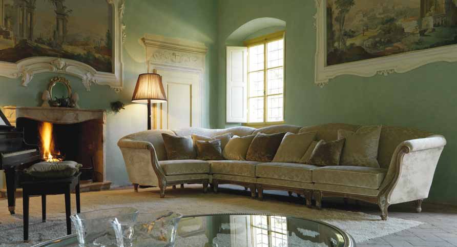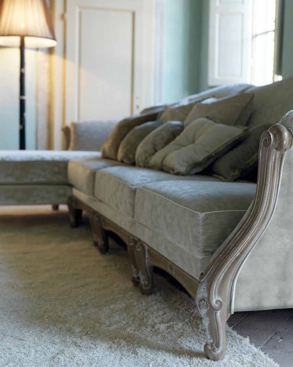 The modular sofa from Italian manufacturer Savio Firmino. Model on wooden frame. Legs low figure. Upholstery models of high quality textiles. Decor - hand carved on front of the armrests. The model is made in classic style. Colours in stock.