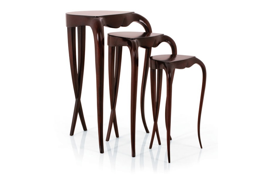 Coffee table Triplets from producer Christopher Guy (Harrison & Gil). The set of three tables of fine carved mahogany. The surface is lacquered black. Tables are the perfect combination of elegance and comfort. The model is made in art Deco style, combines tradition and design. Colours in stock.
