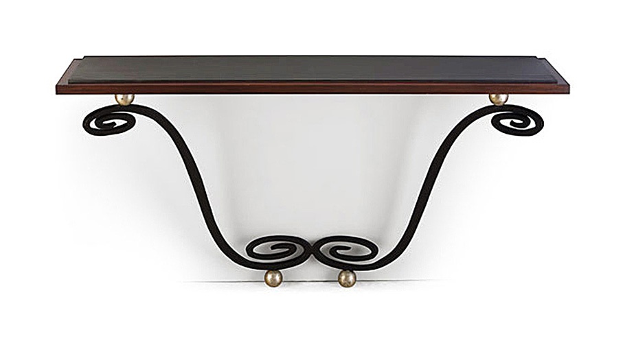 Console Duchamp from producer Christopher Guy (Harrison & Gil). Countertop - natural wood. Forged metal legs. The model is made in art Deco style, combines tradition and design. Colours in stock.