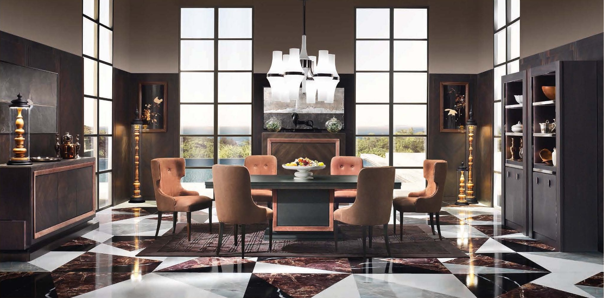 Dining table in modern style wooden Priamo from the Italian manufacturer Smania. The frame is made of wood. The base has a paste from the skin. Finish options: wenge, walnut and rosewood. Accessories from the Nickel & polished stainless steel. Priamo dining table fits in perfectly with the interior and will comfortably accommodate a large family or many guests.
