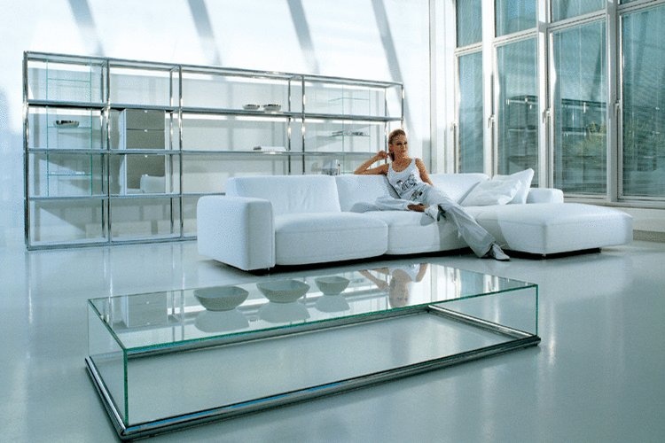Coffee table, Moon - Rivolta. modern transparent model. In the base frame chrome-plated steel. Top made of tempered glass, Satinato. A great solution for Your living room.