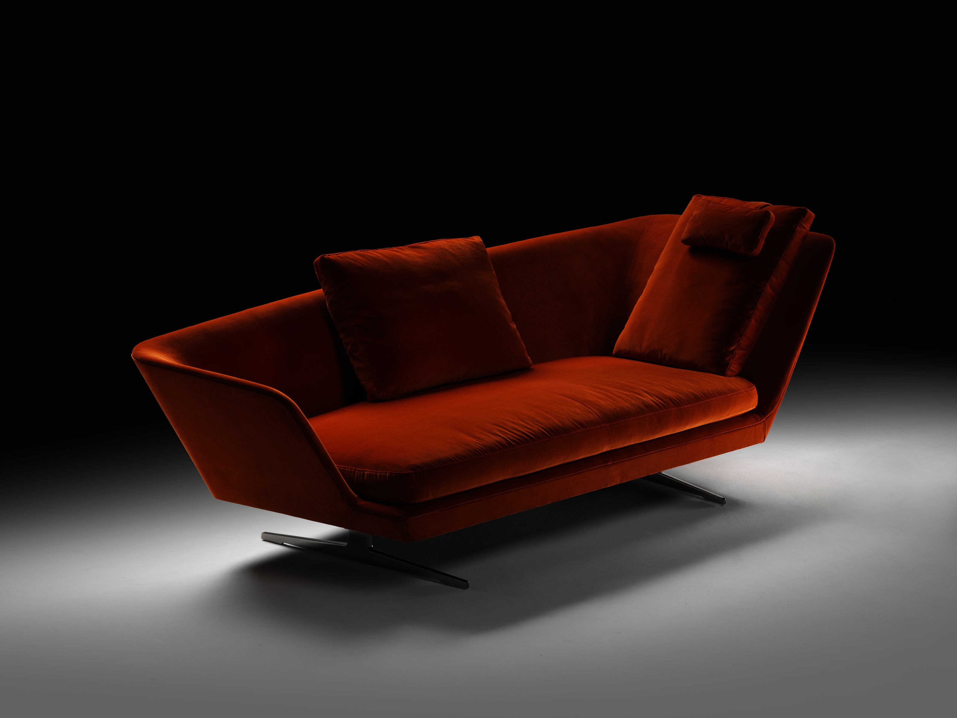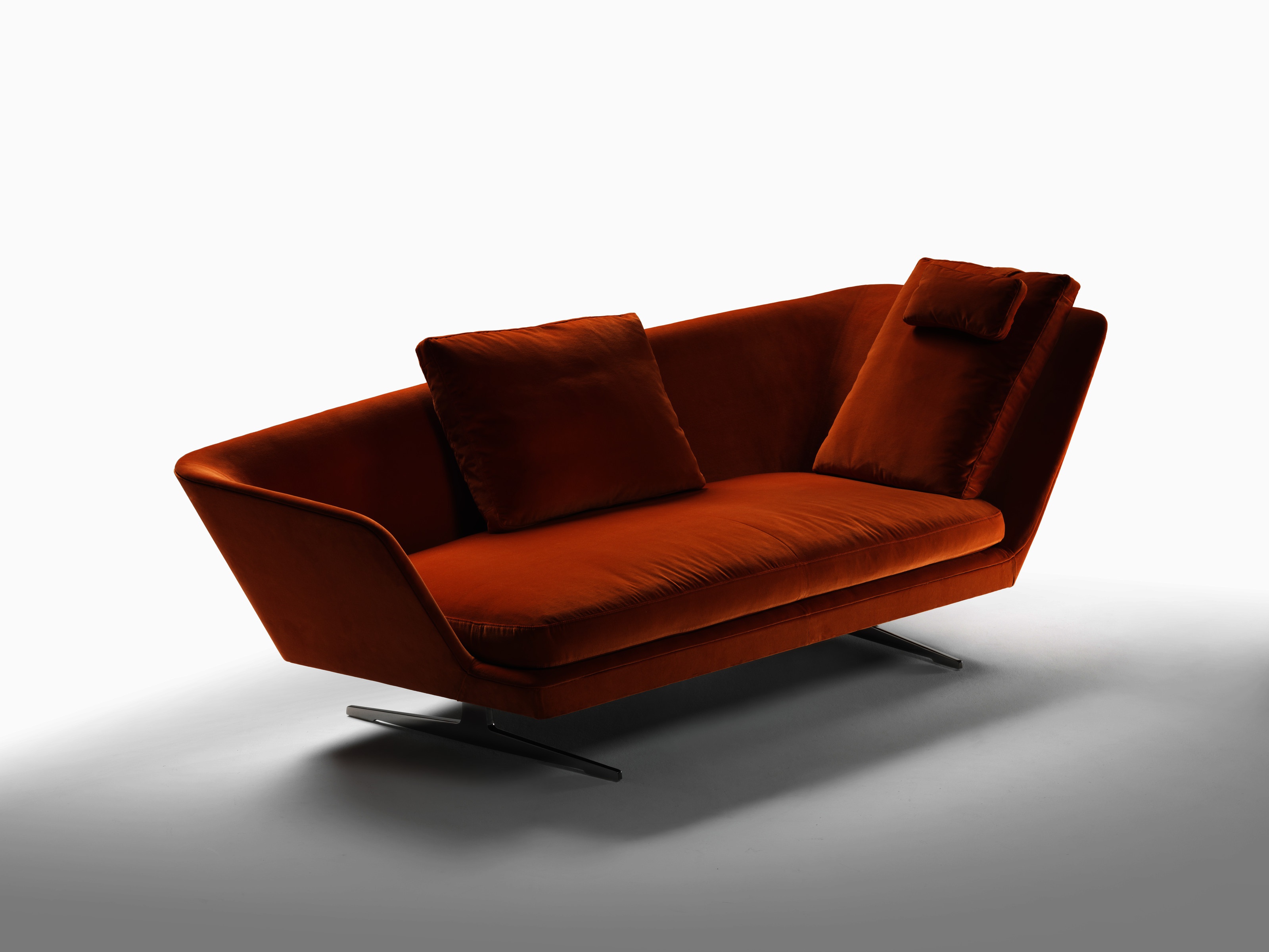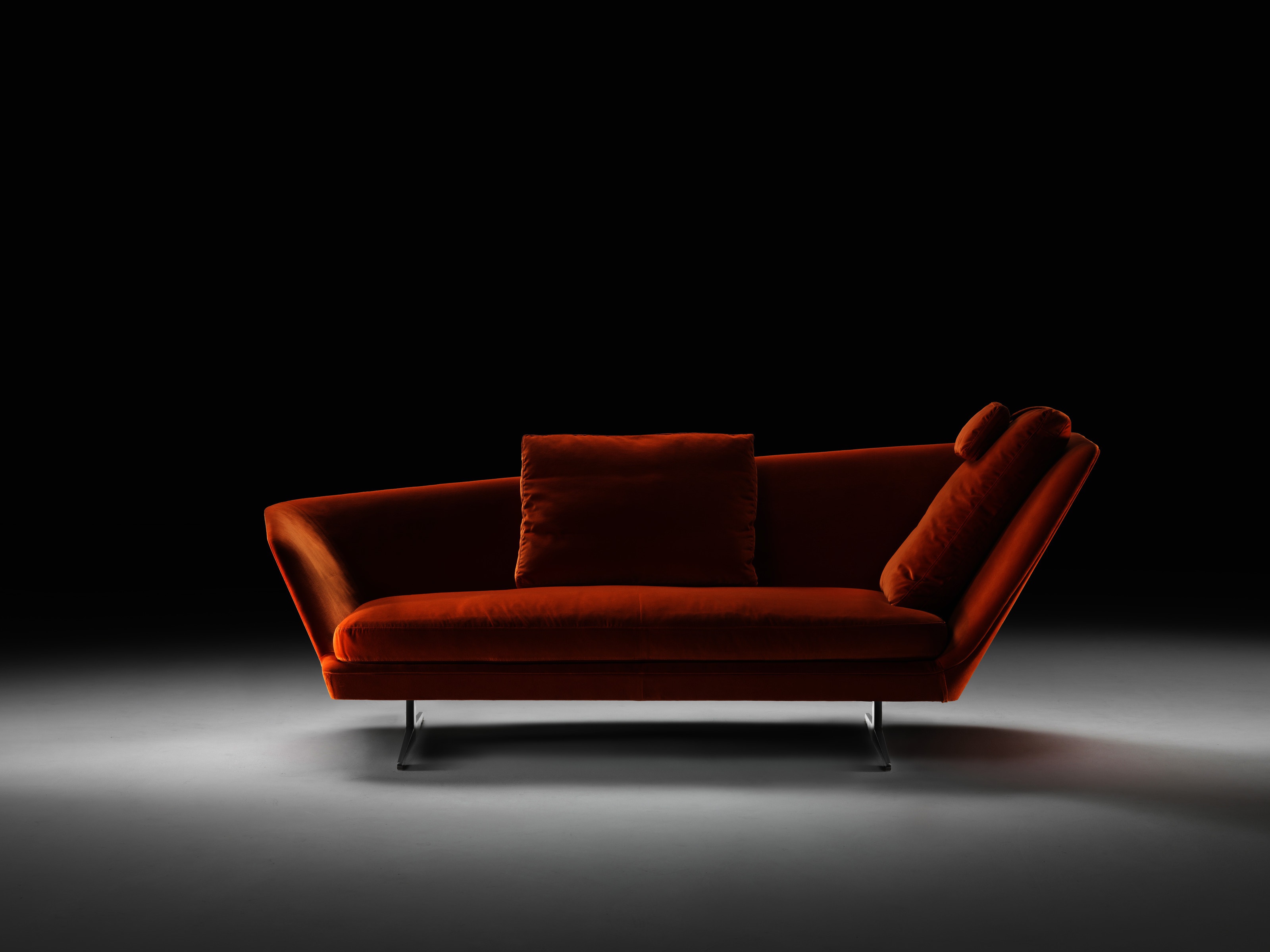 The Zeus sofa from Italian manufacturer Flexform. Design model for living room in modern style. Colors: orange and catalogue of the manufacturer. Filler - rigid polyurethane foam, feather. Upholstered in textile or leather. Optionally, decorate sofa feather cushions. Legs are made from aluminum.