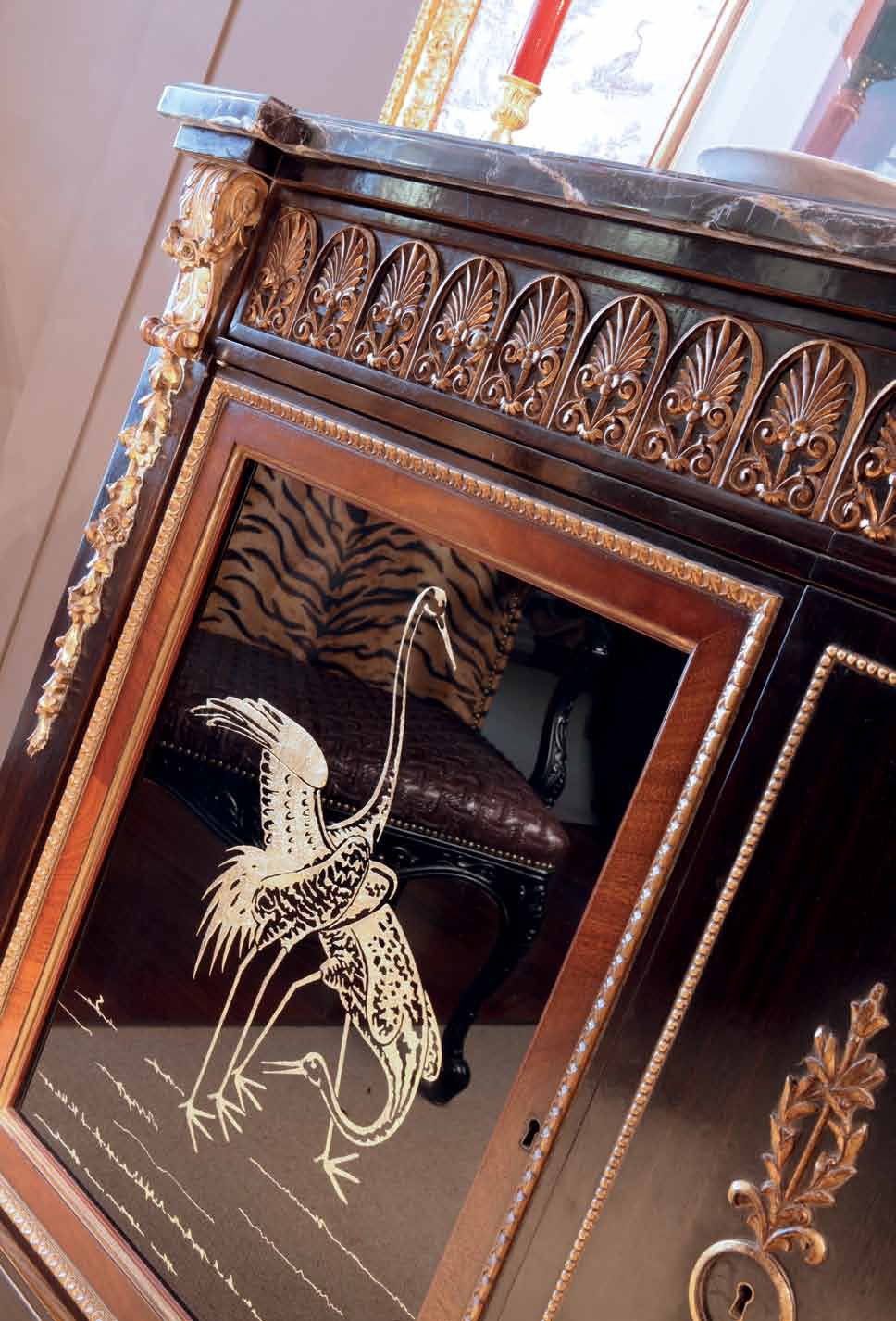 A Chest Of Drawers Art. B/4610 Italian manufacturer Zanaboni. Presents a model of the chest for small feet with double doors, decorated by a fresco of light shades of wood. Ornament in the form of birds and tree. The chest diamond shape. Perfectly complement the interior living room in classical style.