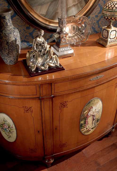 A Chest Of Drawers Art. B/4520 Italian manufacturer Zanaboni. Presents a model of a chest of drawers on small feet, oval shape. The door is decorated by a fresco depicting the Madonna and silver ornamental items. Perfectly complement the interior in a classic style.