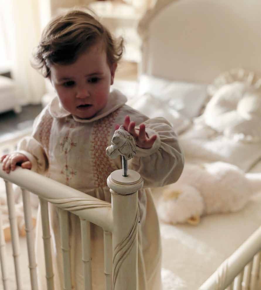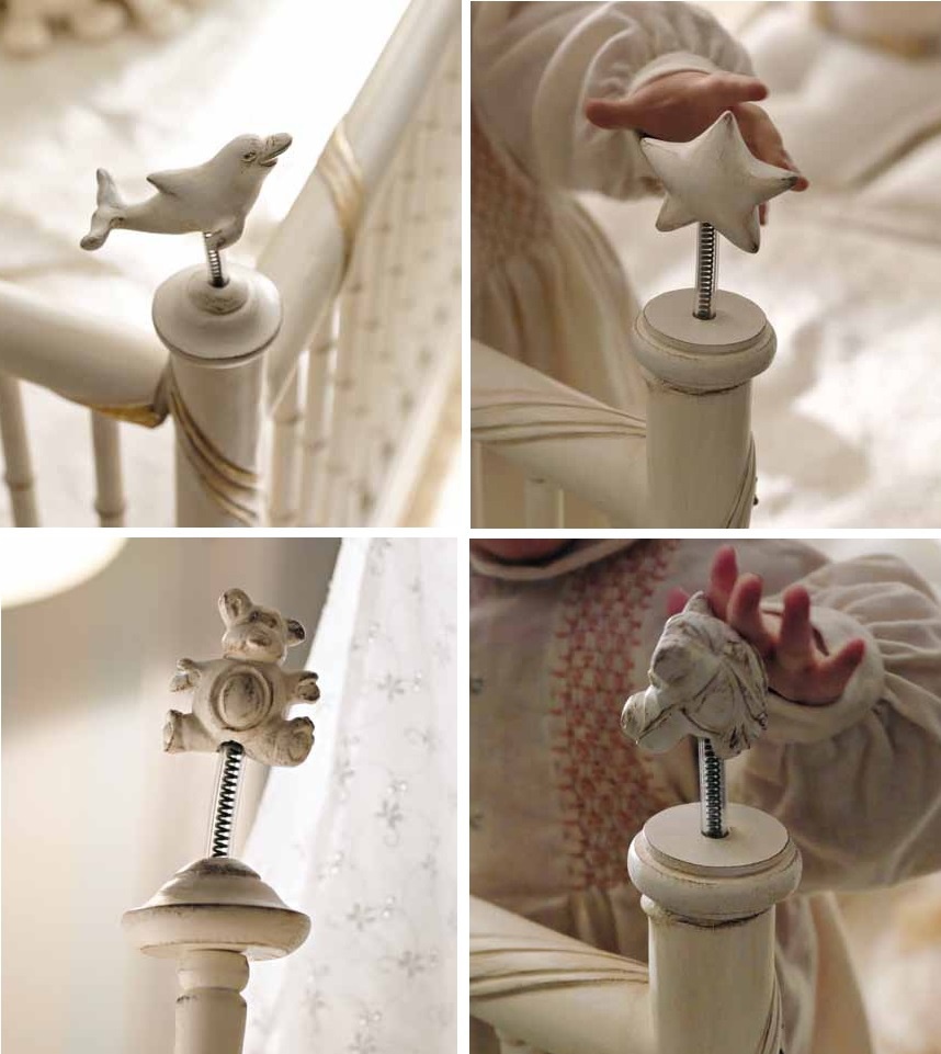 Children's bed from Italian manufacturer Savio Firmino. The bed is equipped with high bumpers. Frame, legs, bumpers are made of solid wood. Upholstery - textiles. Surface finishing - varnish. The decor presents a refined hand carved, covered in gold leaf. Color in stock. The model is made in classic style.