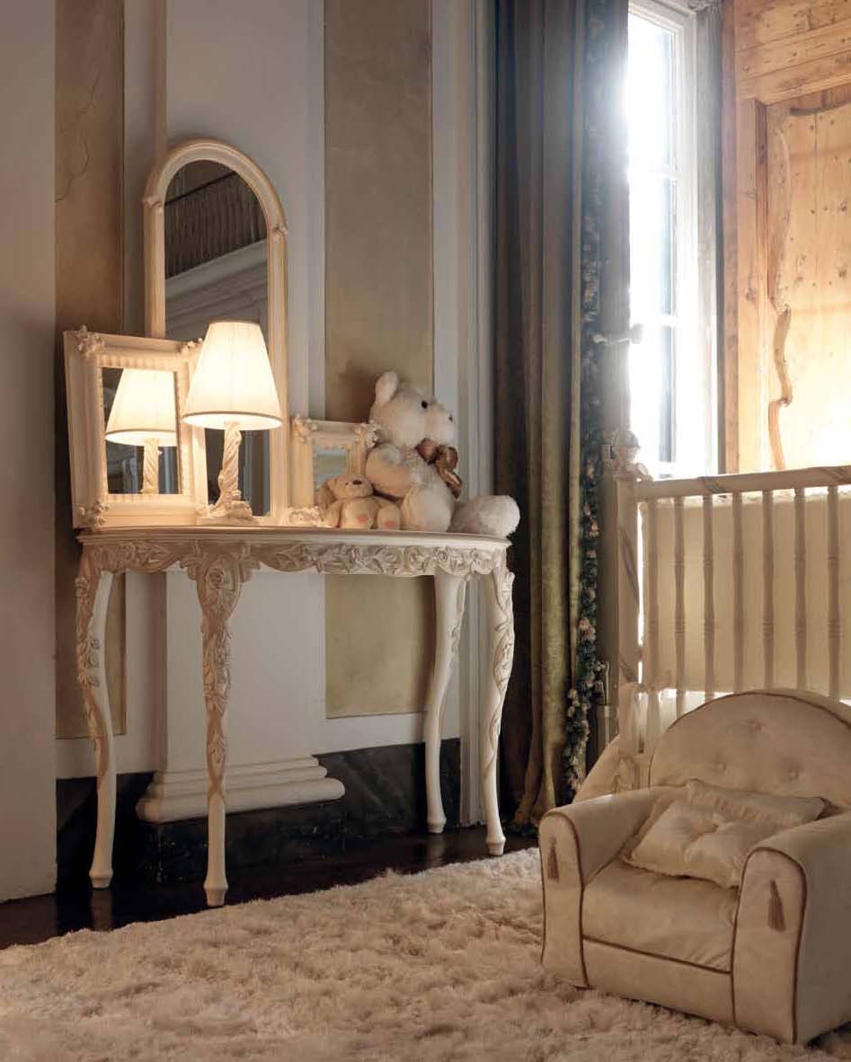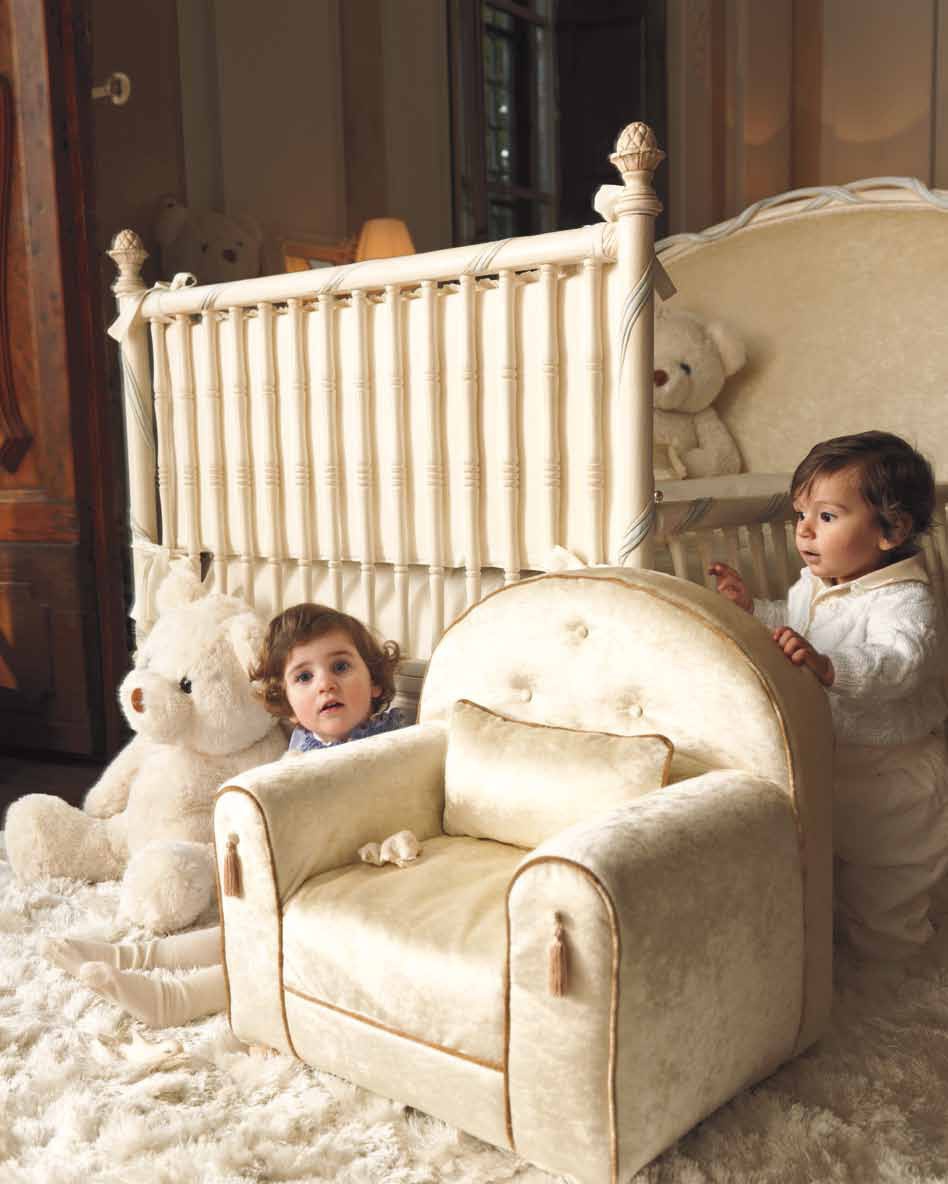 Baby chair from the Italian manufacturer Savio Firmino. The frame is made from solid wood. Upholstery - textiles from the company portfolio. Filler - polyurethane foam. Colours in stock. The product is made in a classic style.