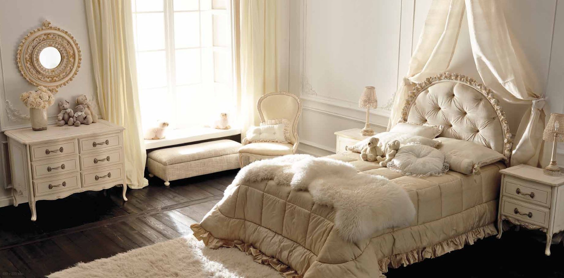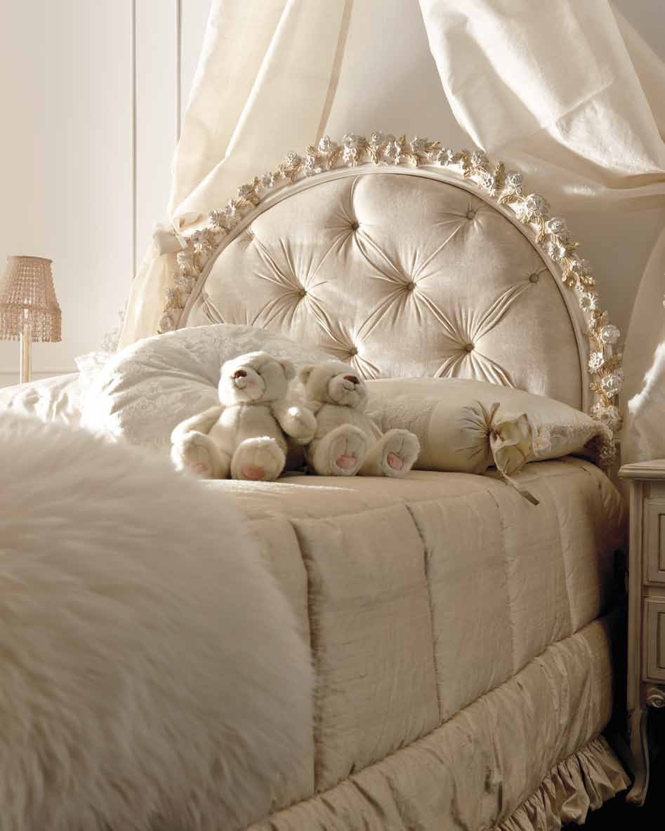 The Notte Fatata bed single from the Italian manufacturer Savio Firmino. Frame products are made of solid wood. Upholstery - textiles from the company portfolio. Decor - hand carved, covered with gold leaf. The surface is lacquered. Colours in stock. Bed in a classical style will perfectly fit in children's bedroom.
