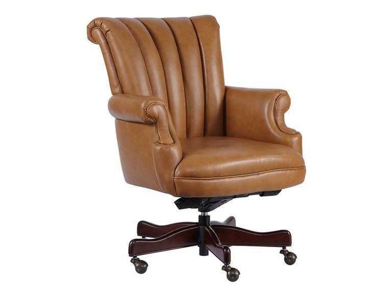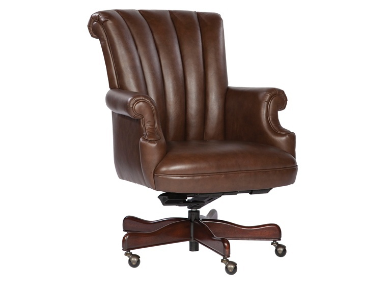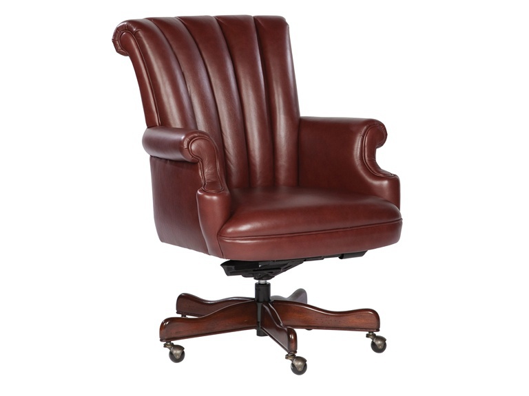 Chair office Executive from an American manufacturer Hekman Furniture. Office chair on rollers, furnished in classic style, is appropriate as a home office, and in the working office environment. Comfortable seat, high back, padded armrests; five-point base is made of wood and mounted on rollers. To achieve a comfortable position using pneumatic lifting mechanism and the tilt mechanism of the knee. Back folded back and stitched vertical stripes. The chair is upholstered in beautiful leather color in stock. Careful selection of highly qualified professionals and follow the traditions of world cultures - that's the key to success and longevity of the company Hekman Furniture world market furniture manufacturers