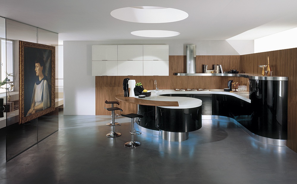 Kitchen Domina Laccato from the Italian manufacturer Aster Cucine. Frame kitchen is made of MDF, and a facade made of veneer wood. Edges are made of stainless steel. The color and decoration of facades in the catalog of the manufacturer.