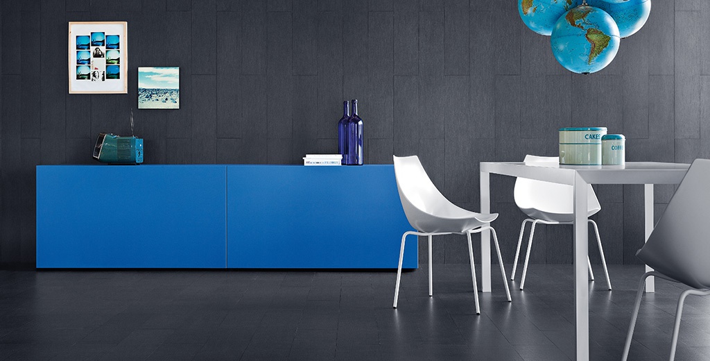 Chest People from the Italian manufacturer Moda.Furniture made of natural wood treated with a gloss lacquer, any color according to the taste of the customer. The model presented in turquoise and white. Modern style interior.