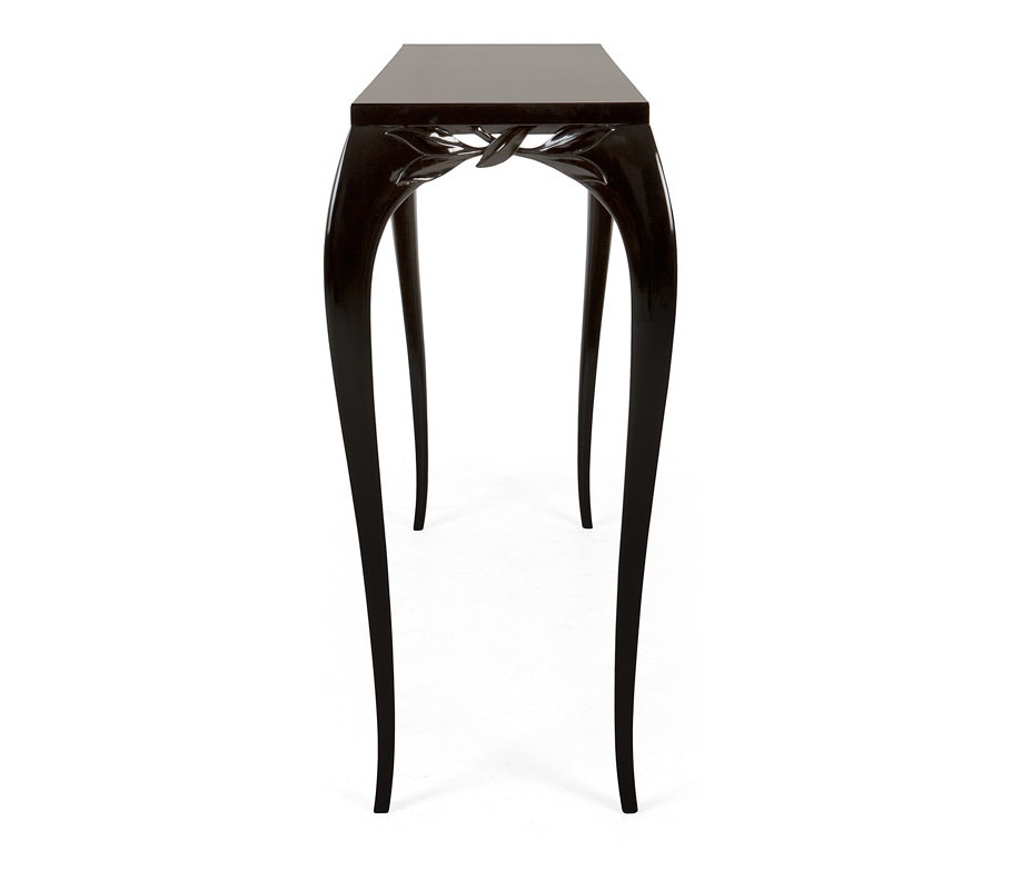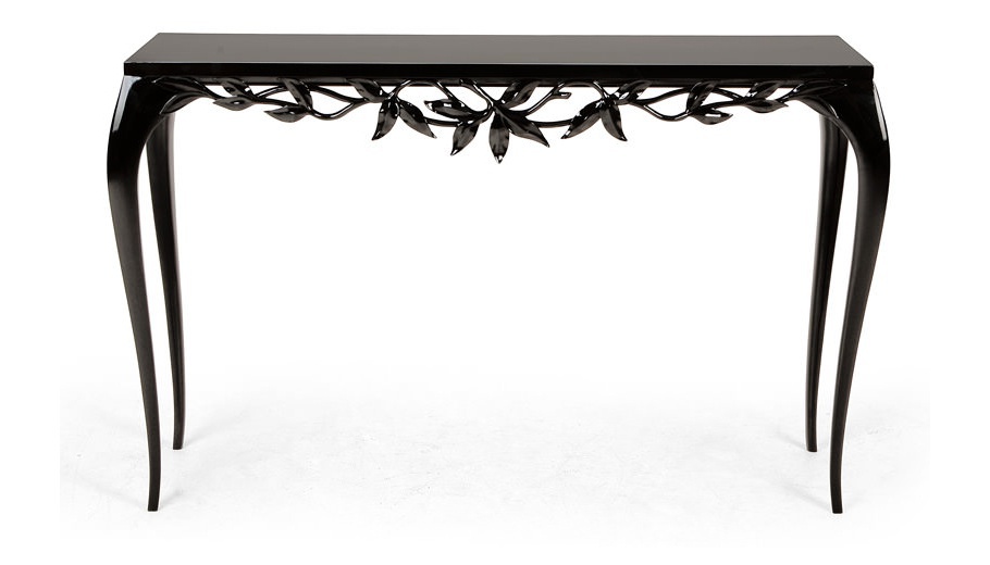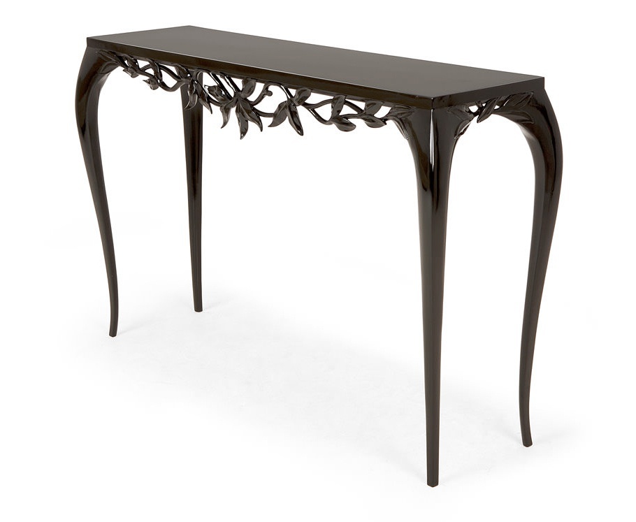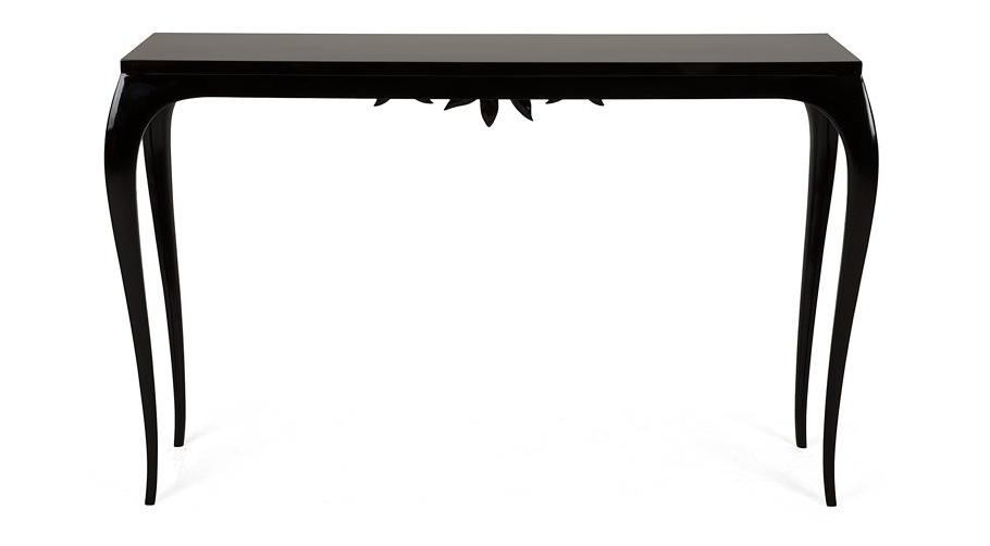 Console Millefeuilles from producer Christopher Guy (Harrison & Gil). Material - natural wood. Curved legs and an architrave decorated with handmade carving. Surface high gloss colored lacquer in black. The model is made in art Deco style. Colours in stock.