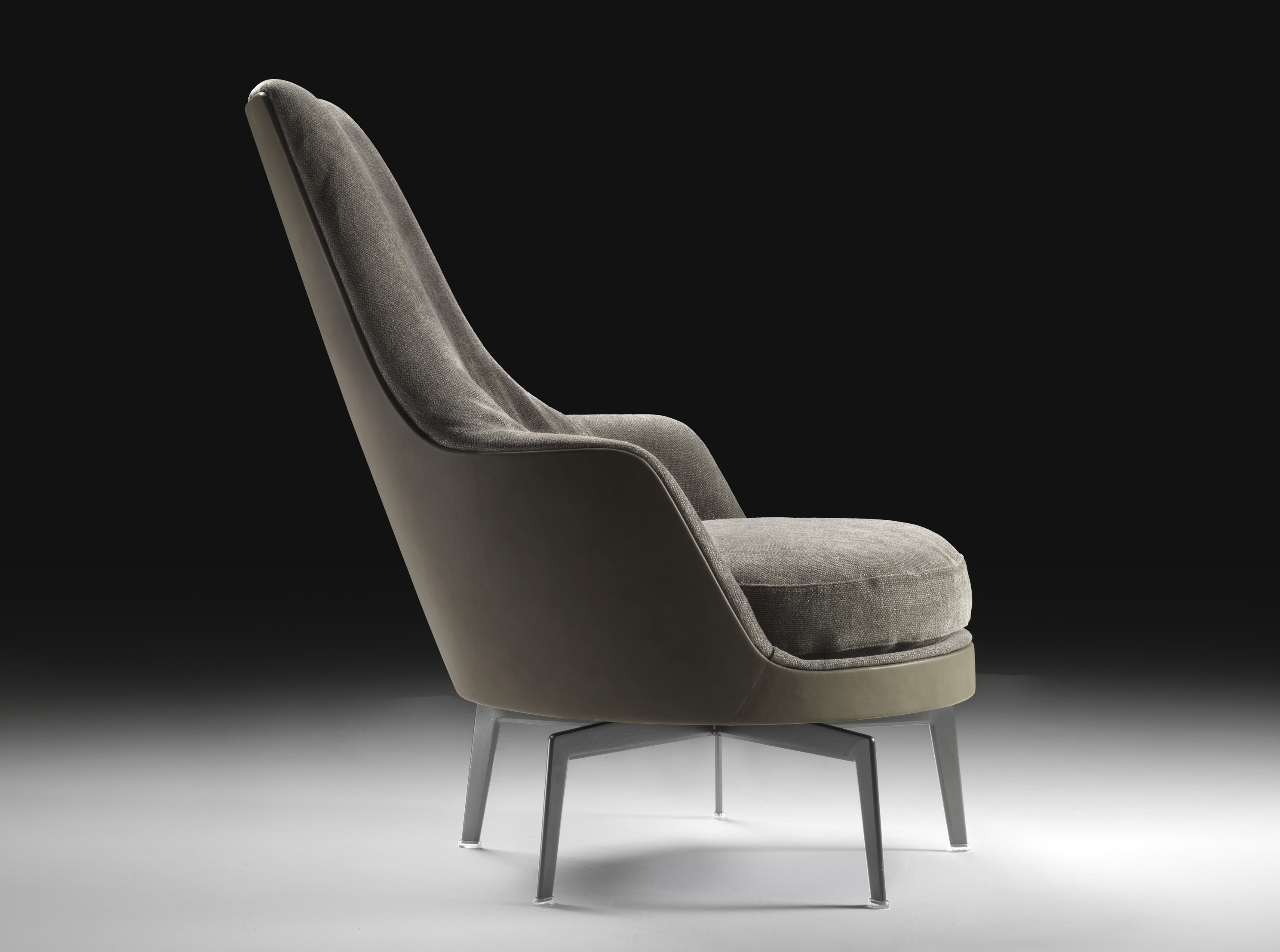 Guscioalto Soft chair from the Italian manufacturer Flexform. Model with a high back. The frame is made of metal. The upholstery is made in leather or fabric from a range of companies, filling of polyurethane foam.