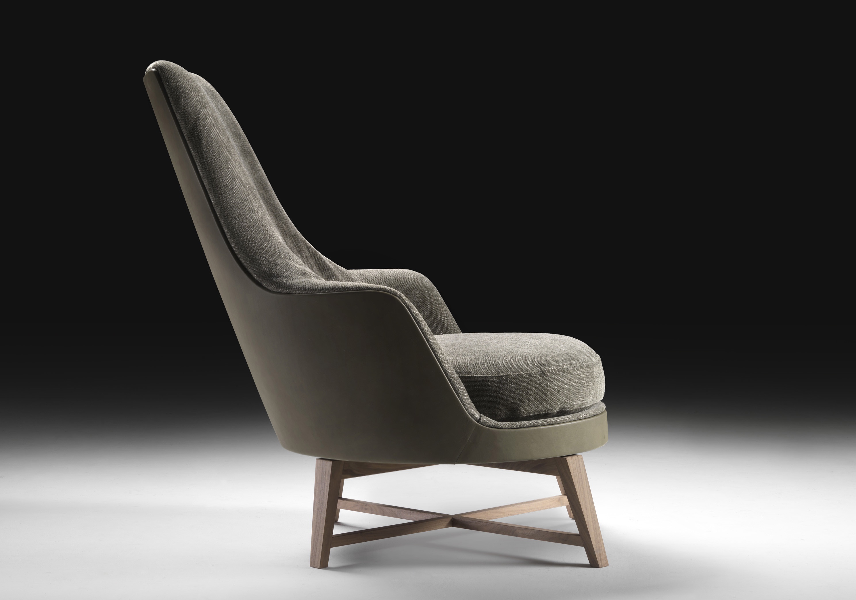 Guscioalto Soft chair from the Italian manufacturer Flexform. Model with a high back. The frame is made from wood. The upholstery is made in leather or fabric from a range of companies, filling of polyurethane foam.