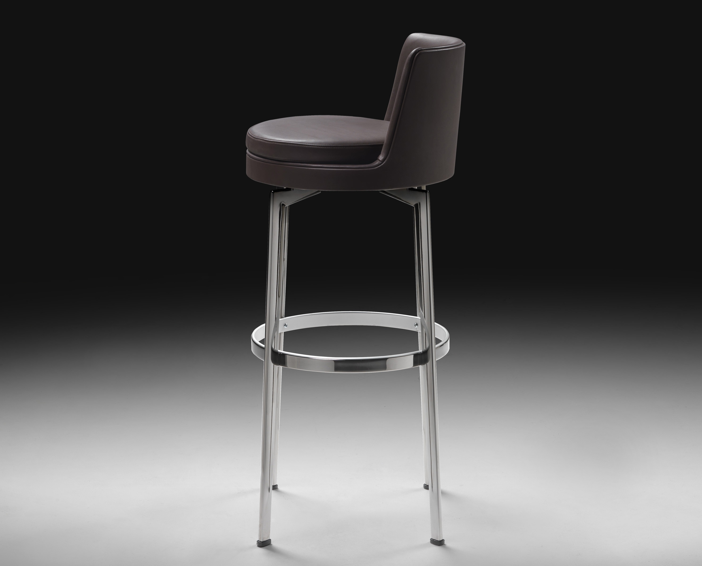 Chair Sgabello Feel Good from the Italian manufacturer Flexform. Bar stool with low round back. Model on a frame of metal, filling the seat - polyurethane foam. The upholstery is made in leather or textiles from a range of companies.