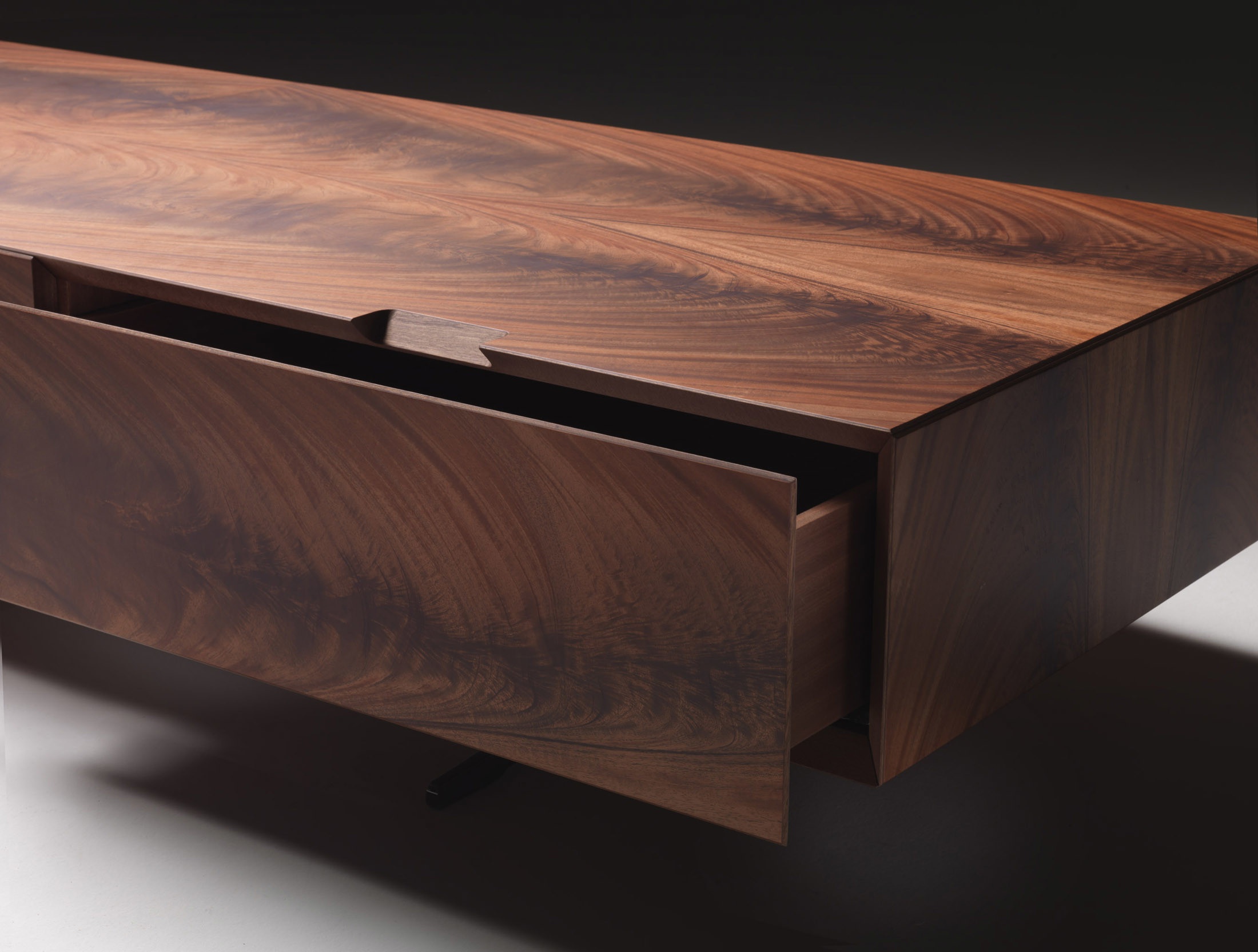 Piuma stand from Italian manufacturer Flexform. Model with case made of wood. The shelves are made of wood and metal. Legs are made from aluminum with finish company directory.