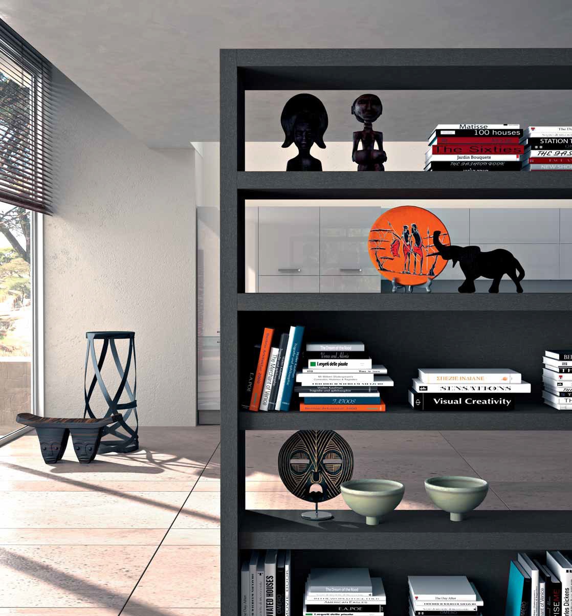 Storage Acropolis from the Italian manufacturer features tisettanta furnishings. Model with open shelves and drawers. Material - wood. The finish offers a matte varnish. The color palette in the catalog of the company.