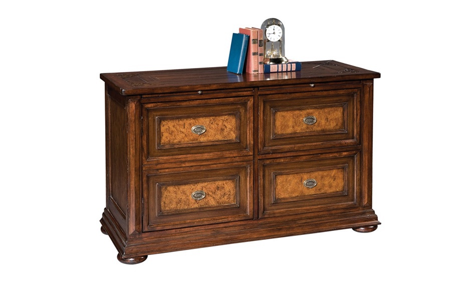 Villa Valencia dresser from the American manufacturer Hekman Contract. Classic nightstand will be appropriate both in the office and in the home office. Made of mahogany wood and walnut, finishing - veneer mahogany. Top with decorative inlay and convex carving, base, legs and carved side panels. Two pull-out work surfaces, to the left of the door is a sliding tray for the printer, to the right are two drawers. The company Hekman Contract - one of the best manufacturers of office furniture in the world market.