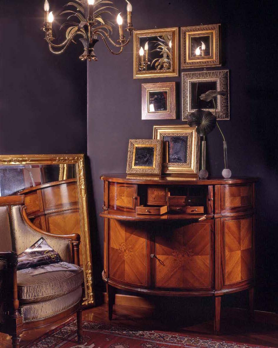 A Chest Of Drawers Art. A/1100 Italian manufacturer Zanaboni. Presents a model of the semicircular chest of drawers with hinged doors and drawers. Original round shape. Dark color tones of natural wood. Perfectly complement the interior in a classic style.