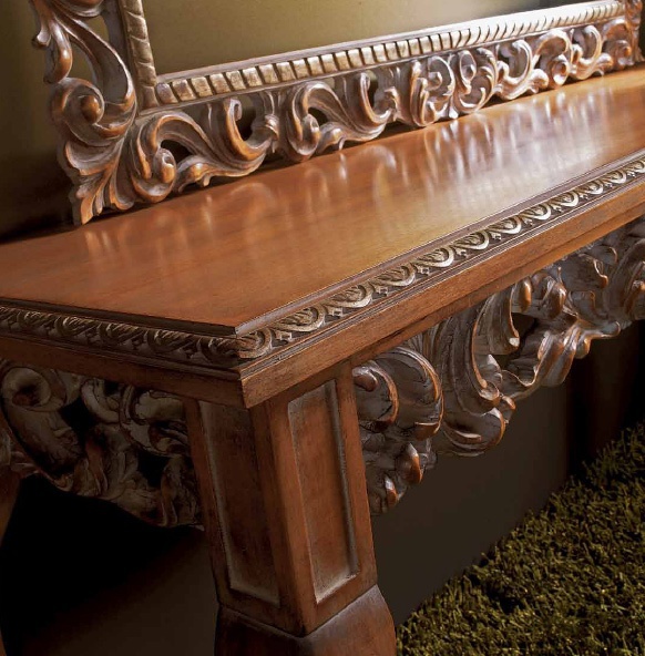 A Chest Of Drawers Art. 480 Italian manufacturer Zanaboni. The presented model of the console at a high figured legs. Color in light beige tone with white grout. Countertop rectangular. Decorated with carved elements handmade. A style classic.