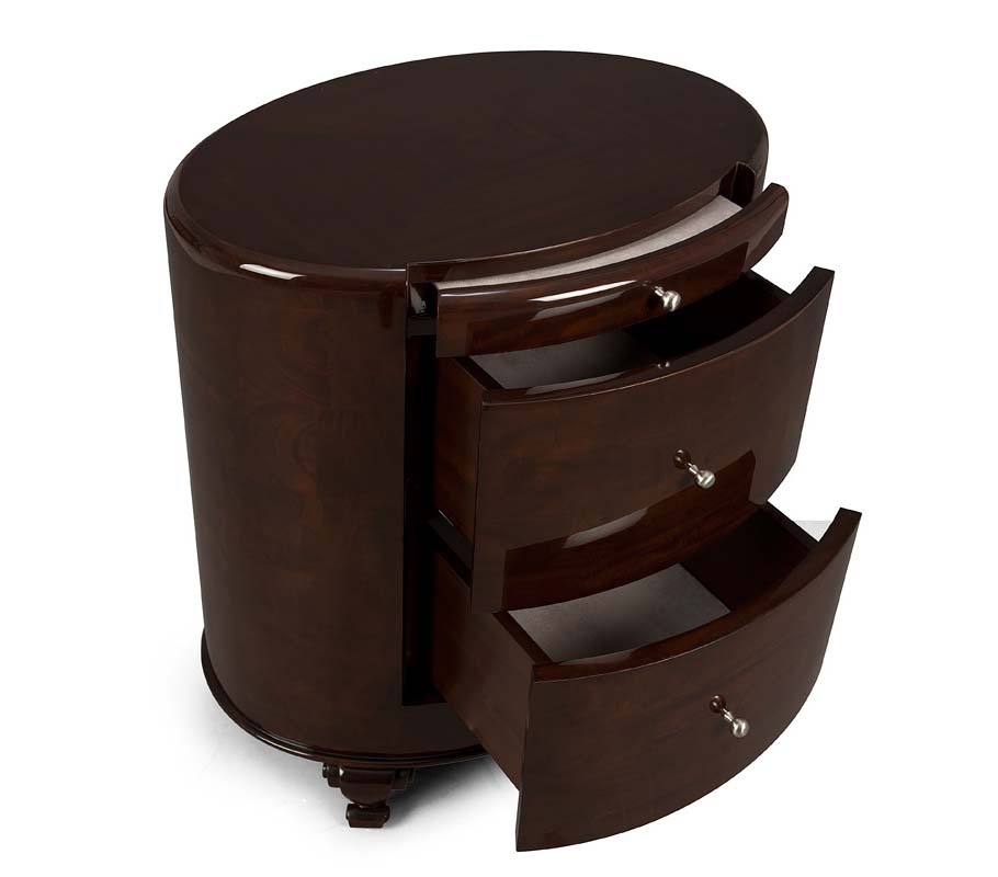 Odeon bedside table from producer Christopher Guy (Harrison & Gil). The case is natural wood. The surface is treated with glossy varnish. Model with drawers in art Deco style. Colours in stock.