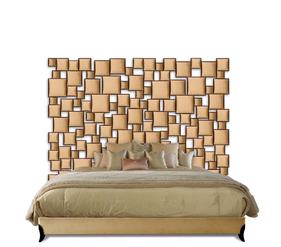 Double bed Carree from producer Christopher Guy (Harrison & Gil). The frame is natural wood. Features attaches to headboard embellished with handmade carvings. Upholstery - textiles. The model is made in art Deco style, combines tradition and design. Colours in stock.