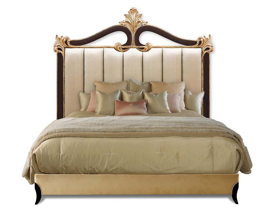 Double bed Juliette from producer Christopher Guy (Harrison & Gil). The frame is natural wood. Decorative elements hand-carved in gold-plated finish. Upholstery - textiles. The model is made in art Deco style, combines tradition and design. Colours in stock.