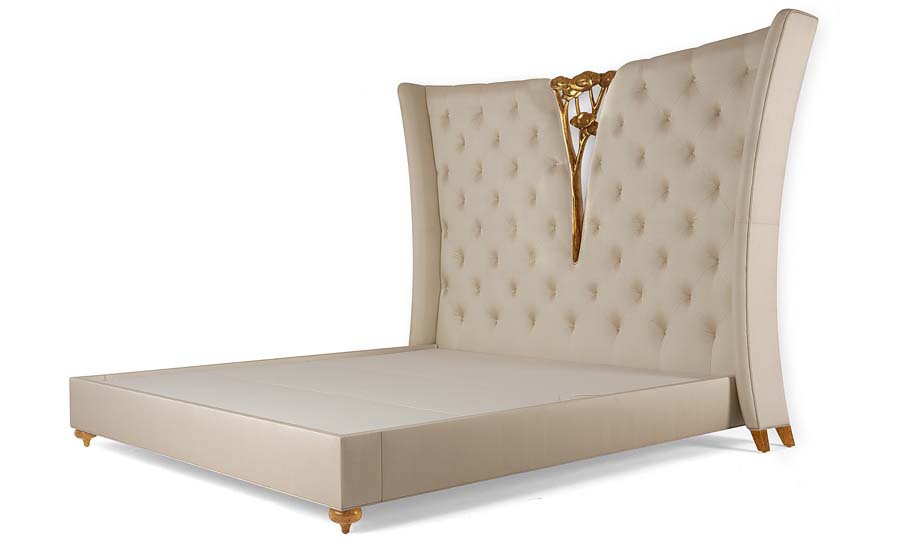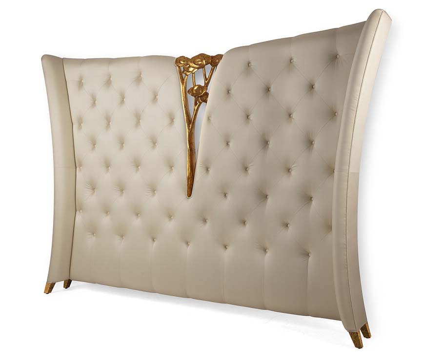 Headboard Bois de Vincennes from producer Christopher Guy (Harrison & Gil). The frame is natural wood. Decorative elements hand-carved in gold-plated finish. The model is decorated decorative stitch-Capito. Colours in stock.