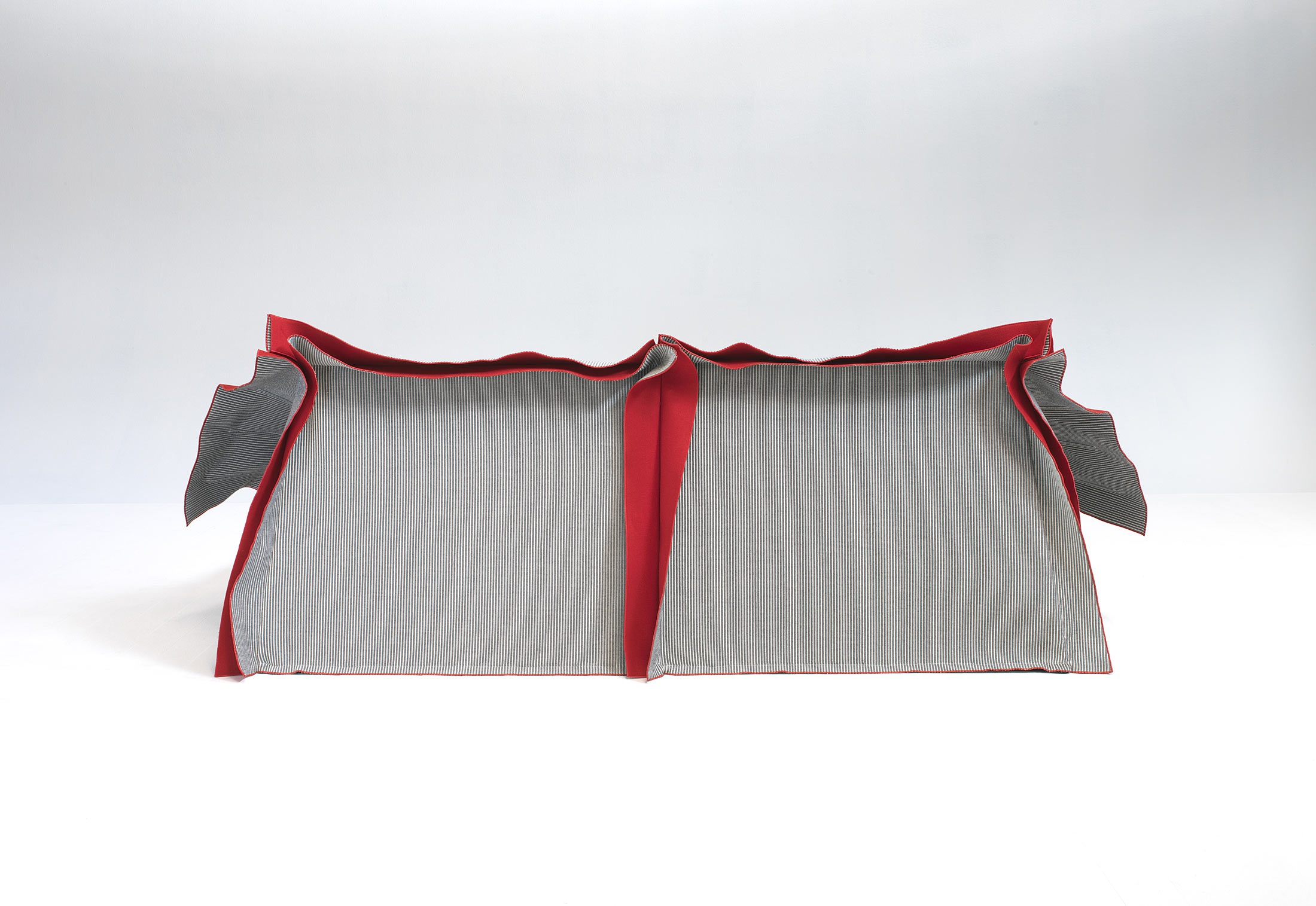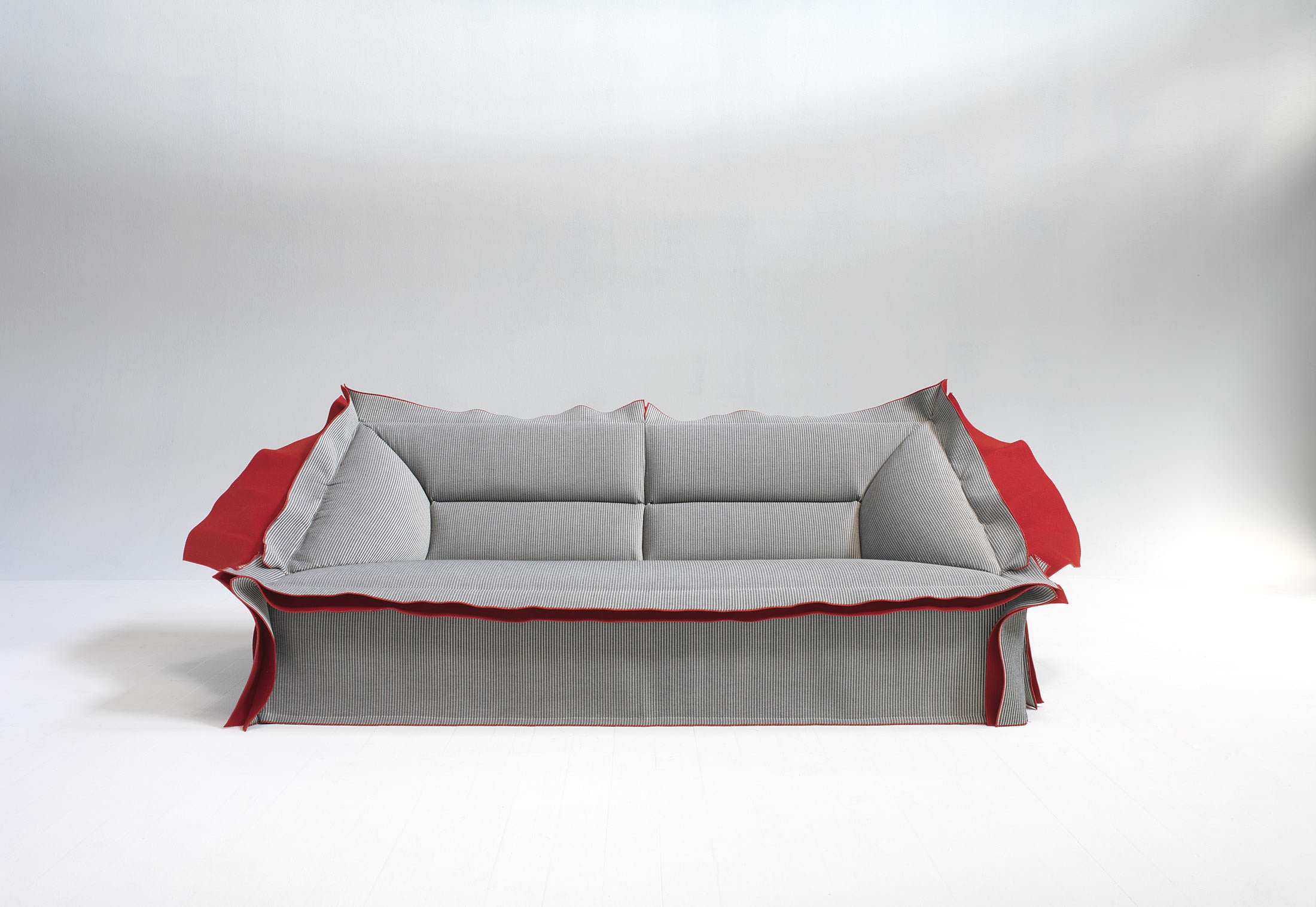 Volant sofa range from the Italian manufacturer. Sofa by designer Patricia Urquiola (Patricia Urquiola). Unusual sofa design model in an elegant "evening dress" ruffle covering the base. "Skirt" can be shortened, leaving the model open legs. Upholstery textiles with decorative stitching. Colors to choose from a range of firms. The perfect solution for your living room.