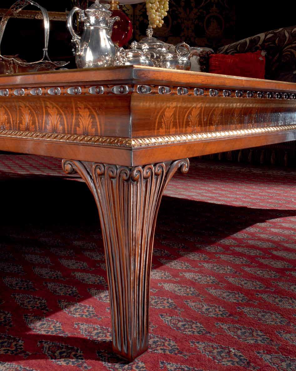 Coffee table Art. 590 of the Italian manufacturer Zanaboni. The presented model square shape for small feet. Finish carved handmade. Color brown, finish under the old. A style classic.